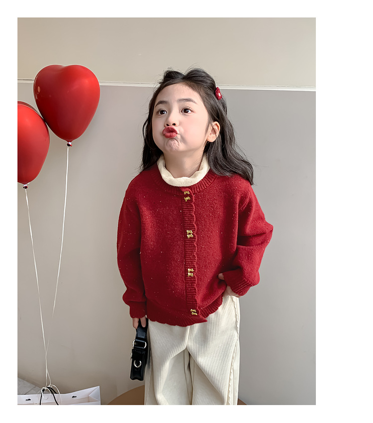 여아용 빨간색 스웨터 코트 2026 겨울 신상 크리스마스 어린이 새해 카디건 설날 의상 여아 니트 스웨터