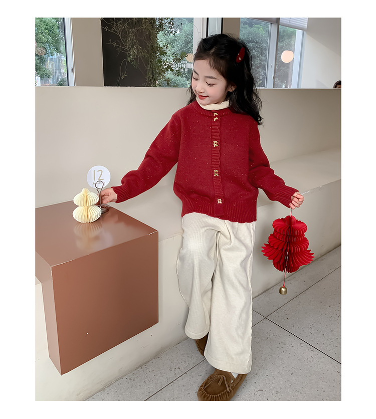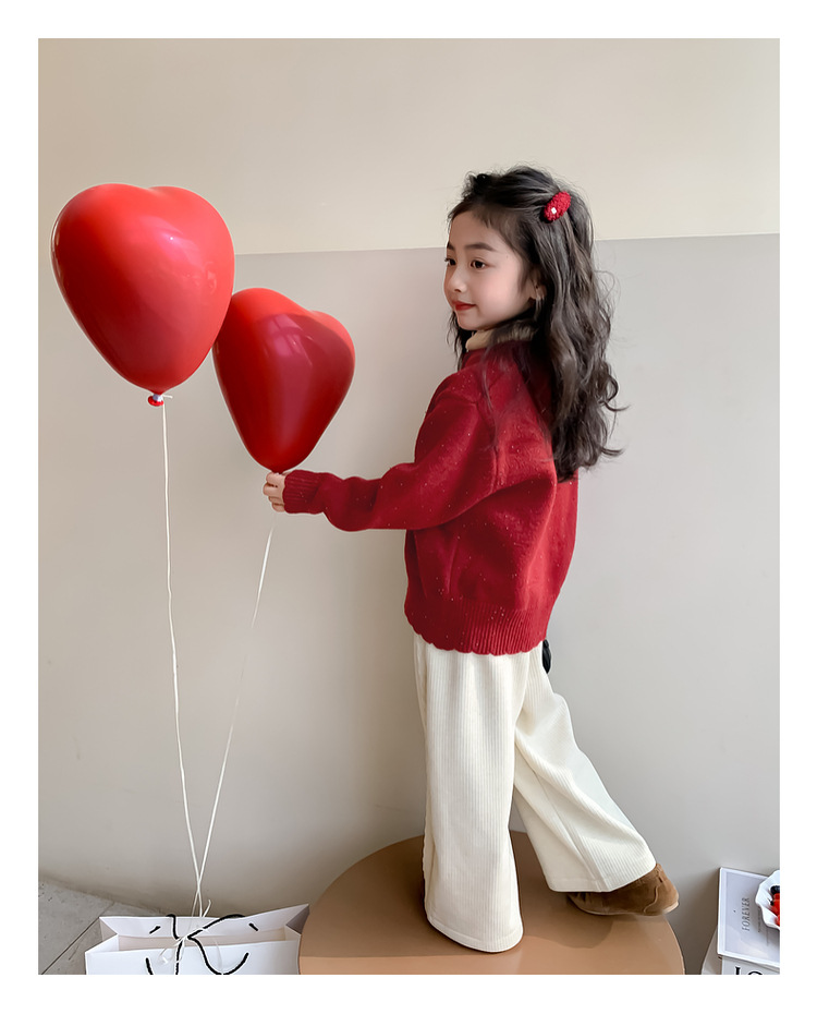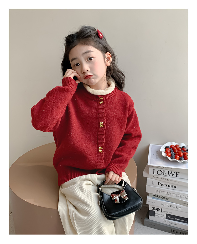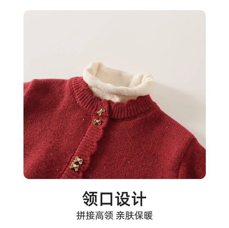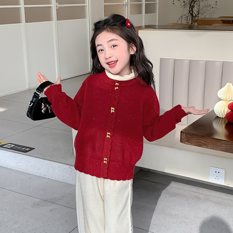 여아용 빨간색 스웨터 코트 2026 겨울 신상 크리스마스 어린이 새해 카디건 설날 의상 여아 니트 스웨터스토어 가기
