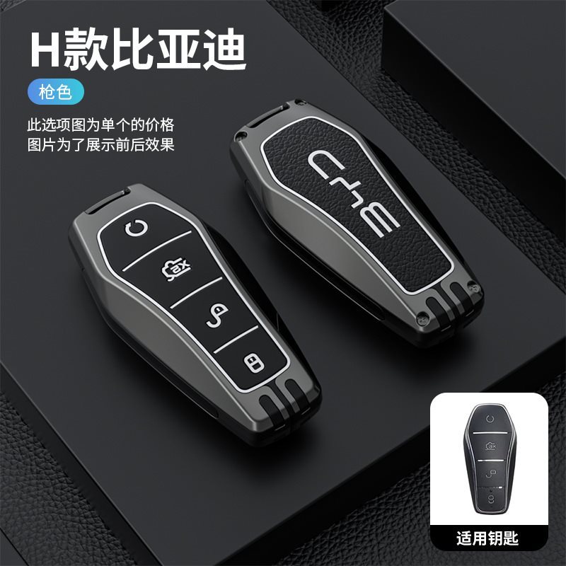 • BYD H 모델 - 스마트 4버튼 [무광건] 싱글 쉘 + 건 컬러 메탈 버클