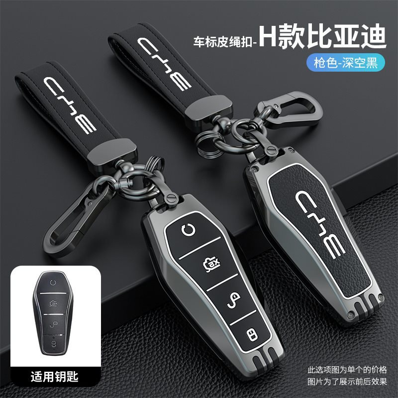 • BYD H 모델 - 스마트 4버튼 [싱글 쉘 건 블랙] + 자동차 로고 가죽 로프 버클 건 블랙