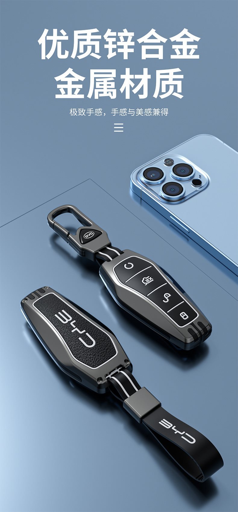 • BYD 모델 F-스마트 4버튼 [매트건] 싱글 쉘 + 딥 스페이스 블랙 핸드 스트랩 버클