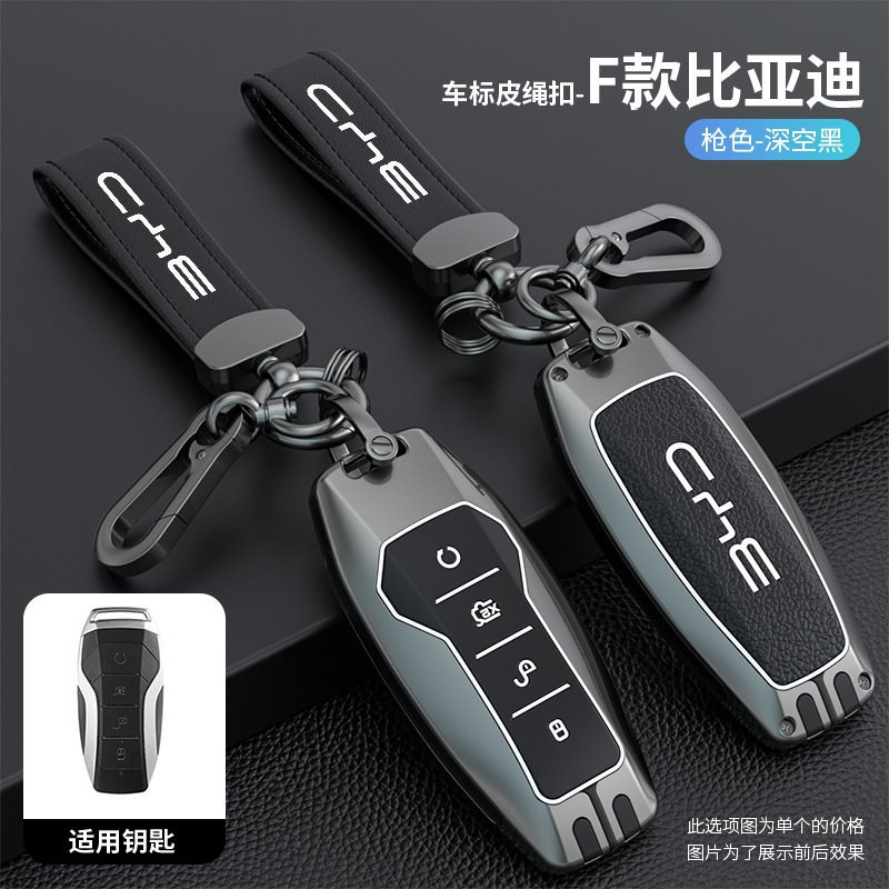 • BYD 모델 F-스마트 4버튼 [싱글 쉘 건 블랙] + 자동차 로고 가죽 로프 버클 건 블랙