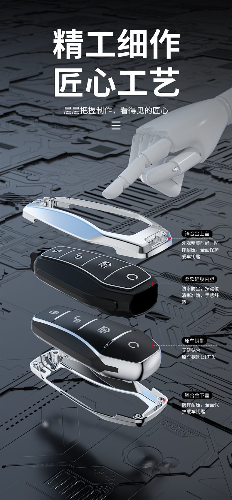 • BYD 모델 F-스마트 4버튼 [브라이트 실버] 싱글 쉘 + 딥 스페이스 블랙 핸드 스트랩 버클