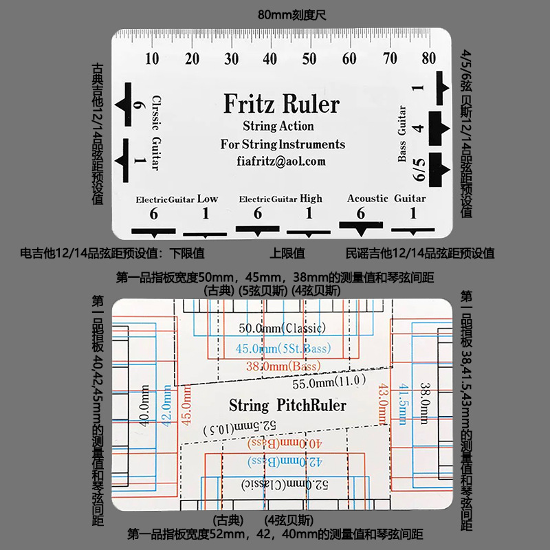 기타 문자열 거리 도구-포크, 클래식, 일렉트릭 기타 및베이스를위한 다기능 캘리퍼