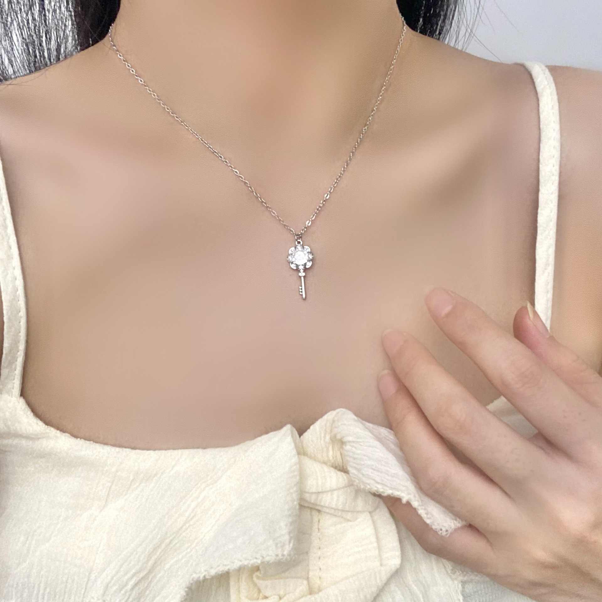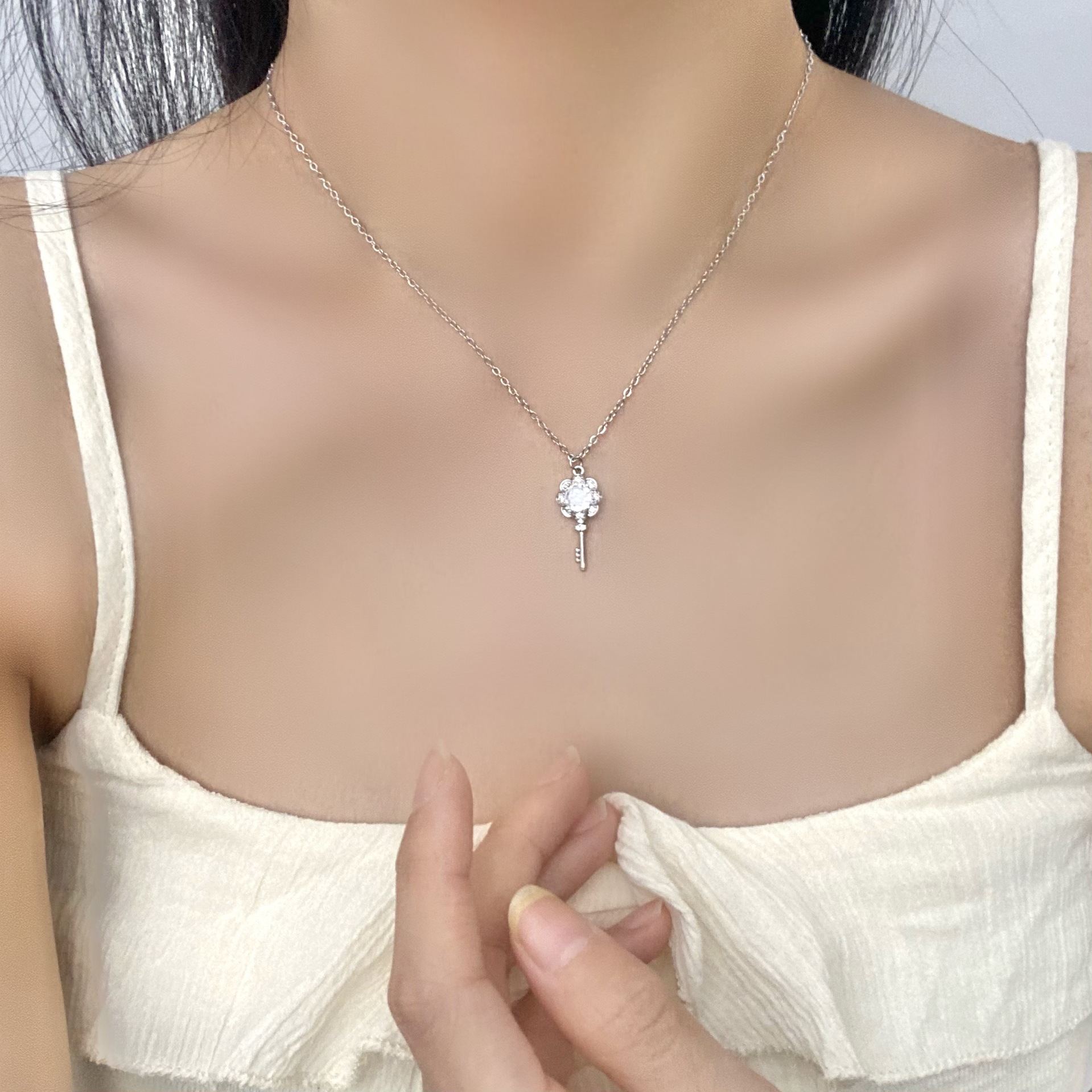 마이크로 상감 지르콘 풀 다이아몬드 작은 키 눈송이 펜던트 목걸이 여성의 가벼운 고급 틈새 디자인 하이 엔드 쇄골 체인 목걸이