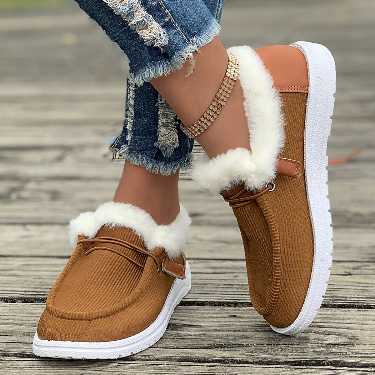 국경 간 플러스 사이즈 기모 따뜻한 Lefu 여성 신발 2025 새로운 유럽과 미국의 모피 캐주얼 스웨이드 코튼 신발 도매