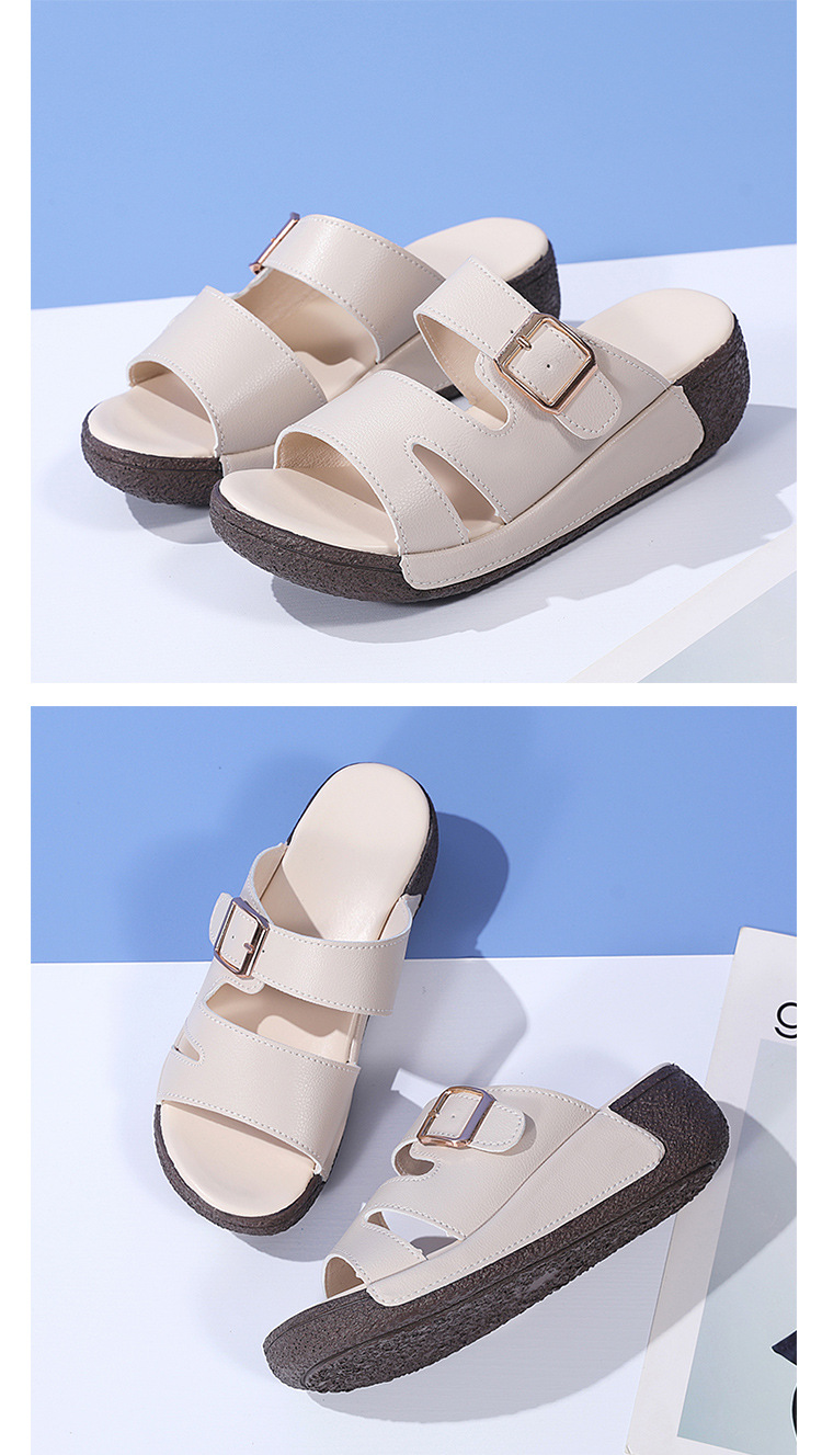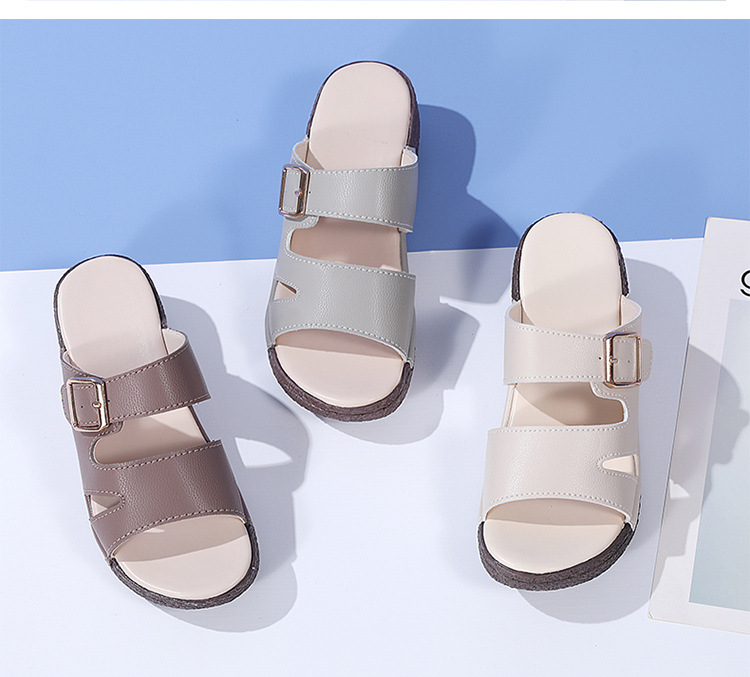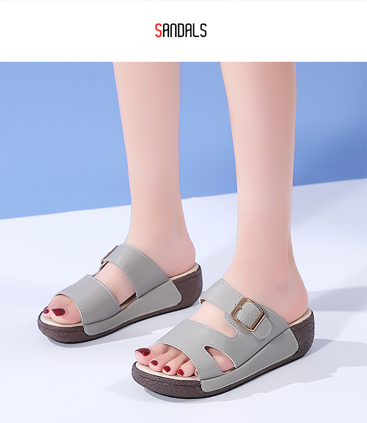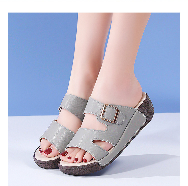 2024 여름 두꺼운 슬리퍼 캐주얼 편안한 반 슬리퍼 웨지 힐이있는 여성용 미끄럼 방지 샌들