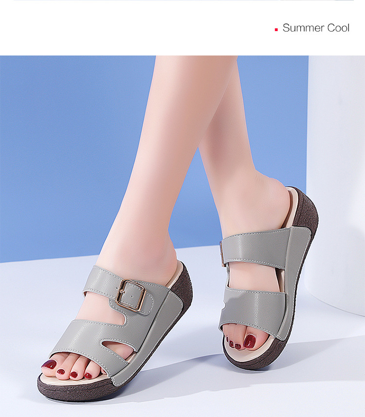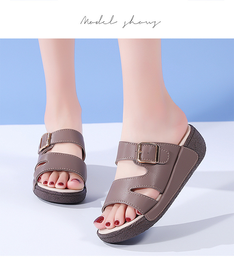 2024 여름 두꺼운 슬리퍼 캐주얼 편안한 반 슬리퍼 웨지 힐이있는 여성용 미끄럼 방지 샌들스토어 가기