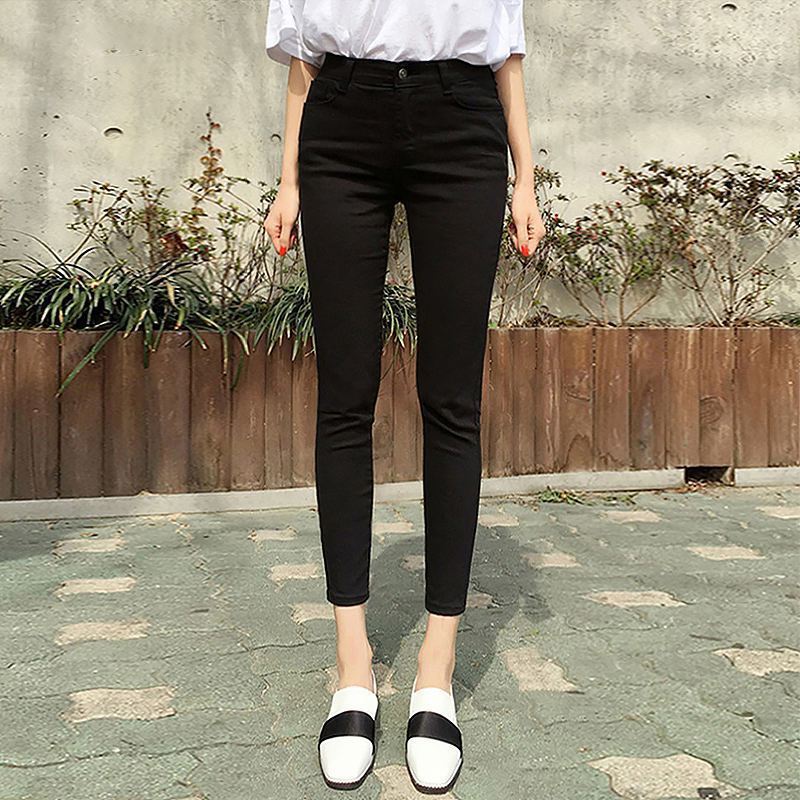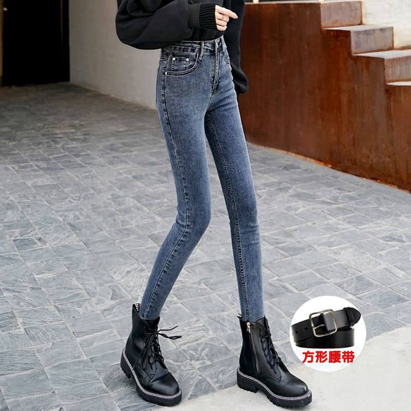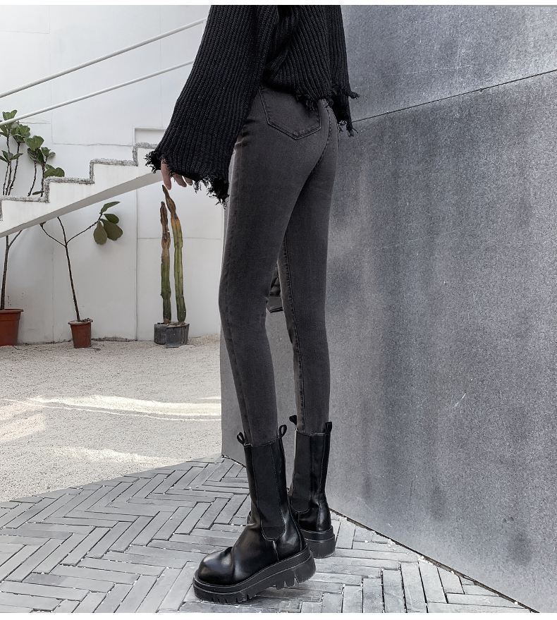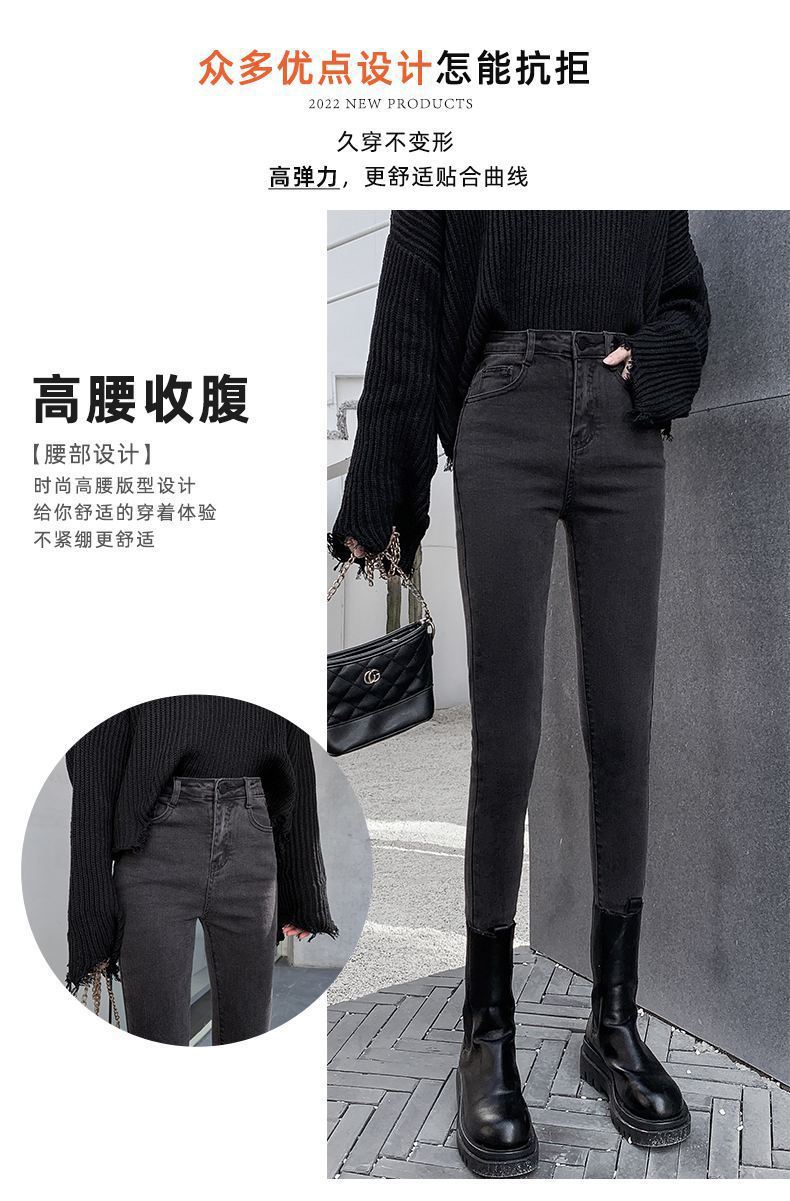 검은 회색 스키니 청바지 여성의 높은 허리 2022 가을과 겨울 새로운 탄성 슬림 슬림 슬림 단단한 연필 바지스토어 가기