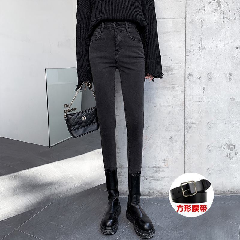 검은 회색 스키니 청바지 여성의 높은 허리 2022 가을과 겨울 새로운 탄성 슬림 슬림 슬림 단단한 연필 바지