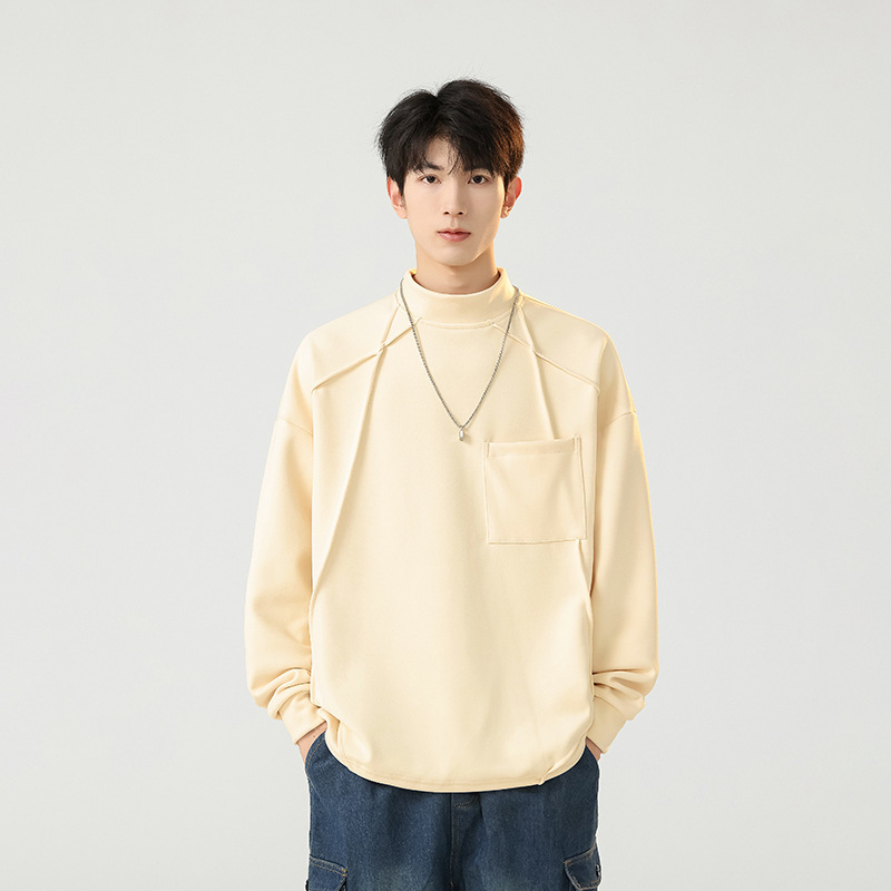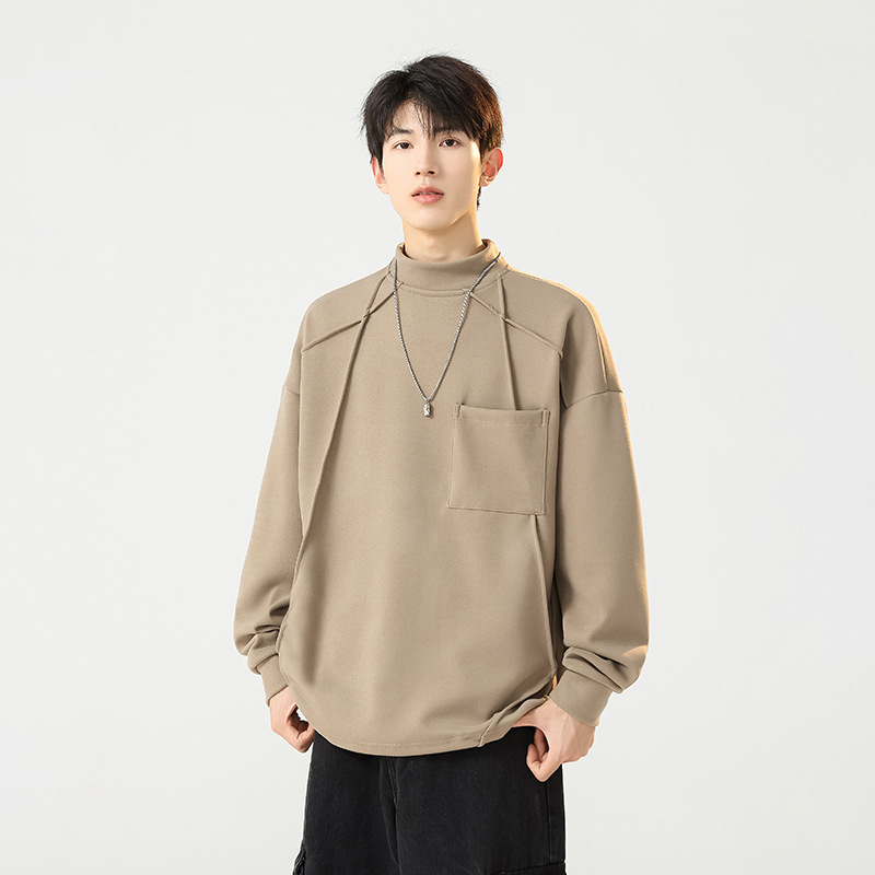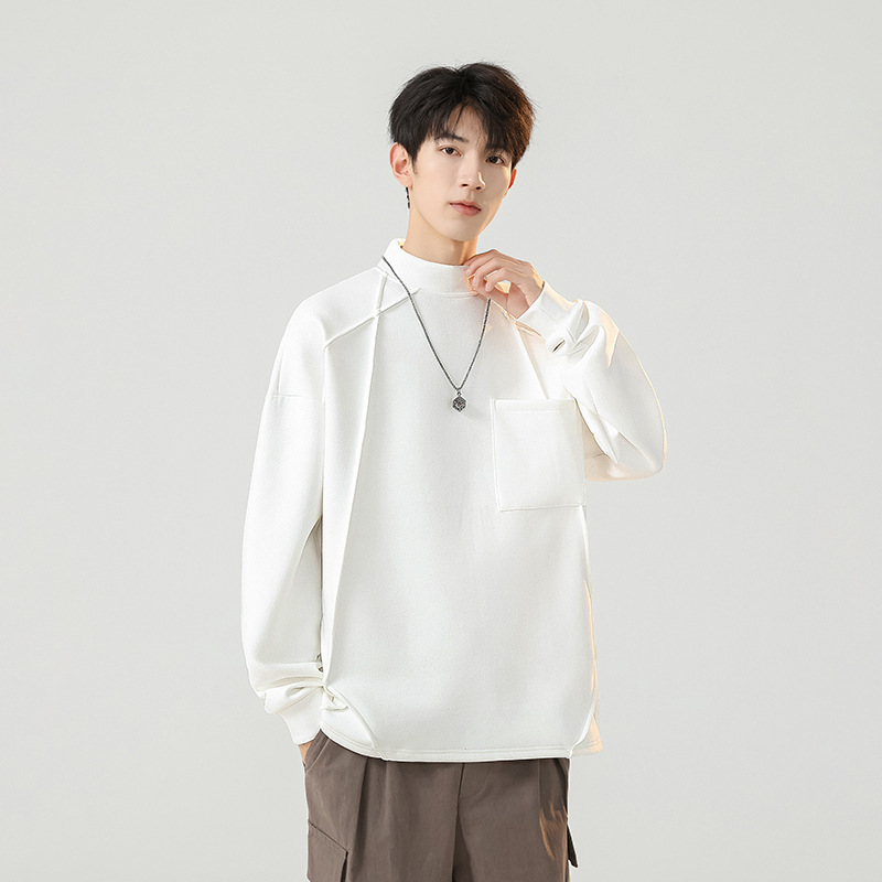 봄과 가을 새로운 반 높이 칼라 스웨트 셔츠 남성 긴팔 티셔츠 남성 인스 타 그램 인기 브랜드 루즈 올 매치 캐주얼 남성스토어 가기