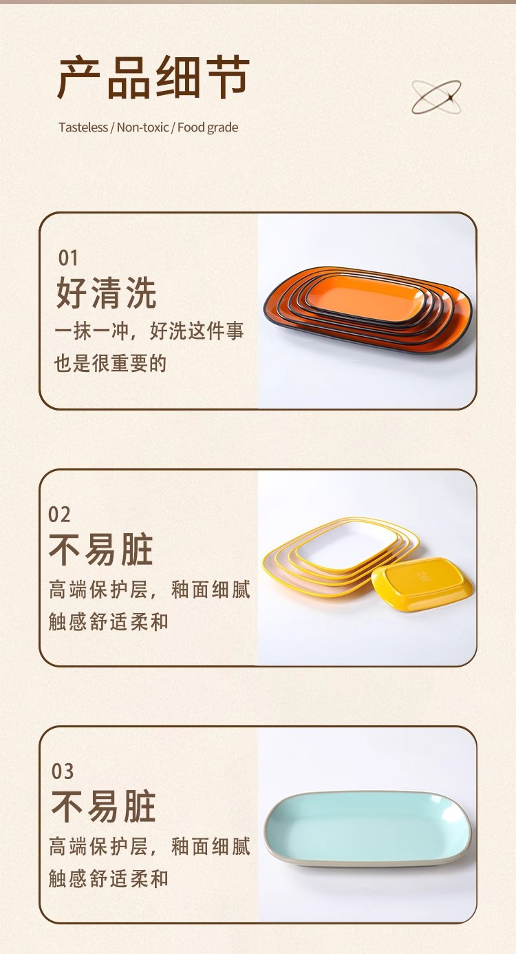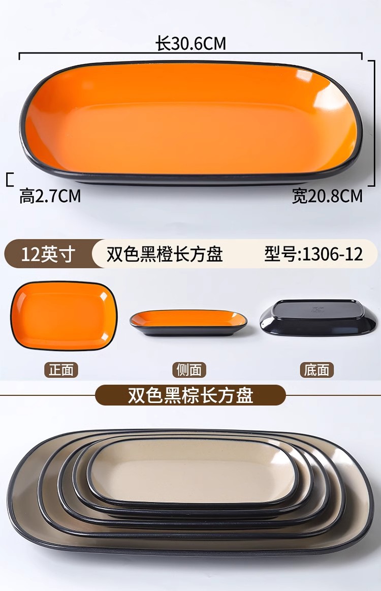 멜라민 석재 공장 쌀 롤 플레이트 직사각형 쇠고기 반찬 플라스틱 냄비 레스토랑 바베큐 차가운 요리 스낵 접시 2 색