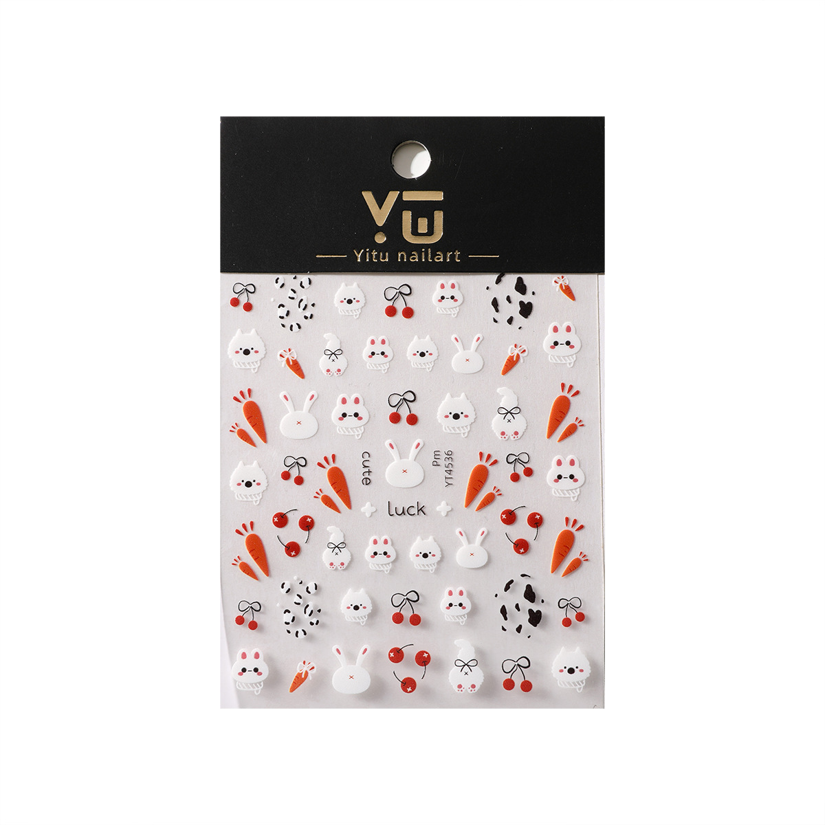YITU 개미 그림 플랫 토끼 당근 네일 아트 스티커 활 체리 접착제 네일 장식 스티커 YT4536