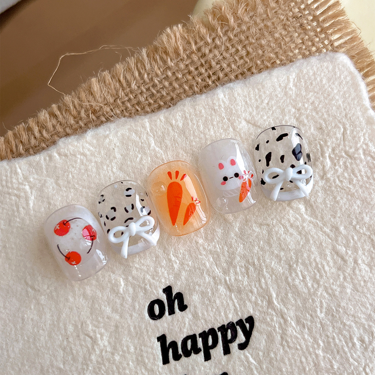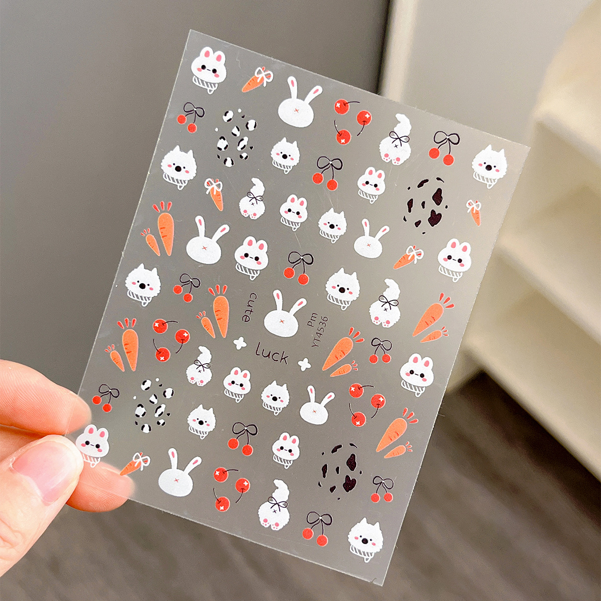 YITU 개미 그림 플랫 토끼 당근 네일 아트 스티커 활 체리 접착제 네일 장식 스티커 YT4536스토어 가기