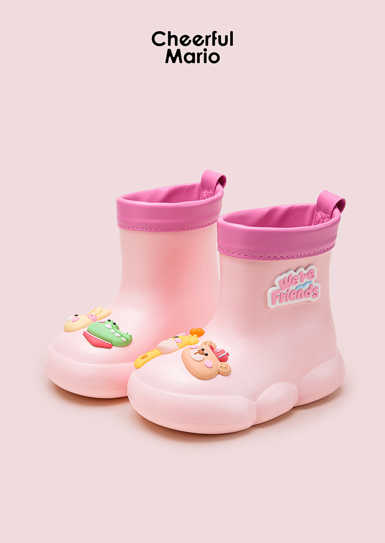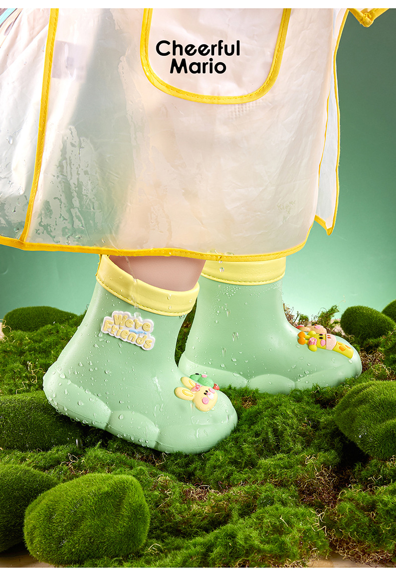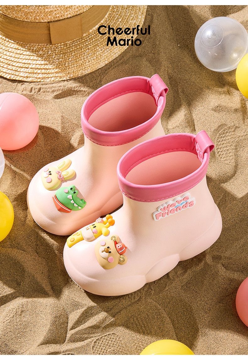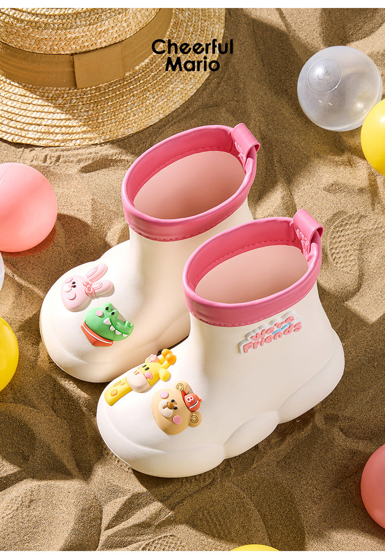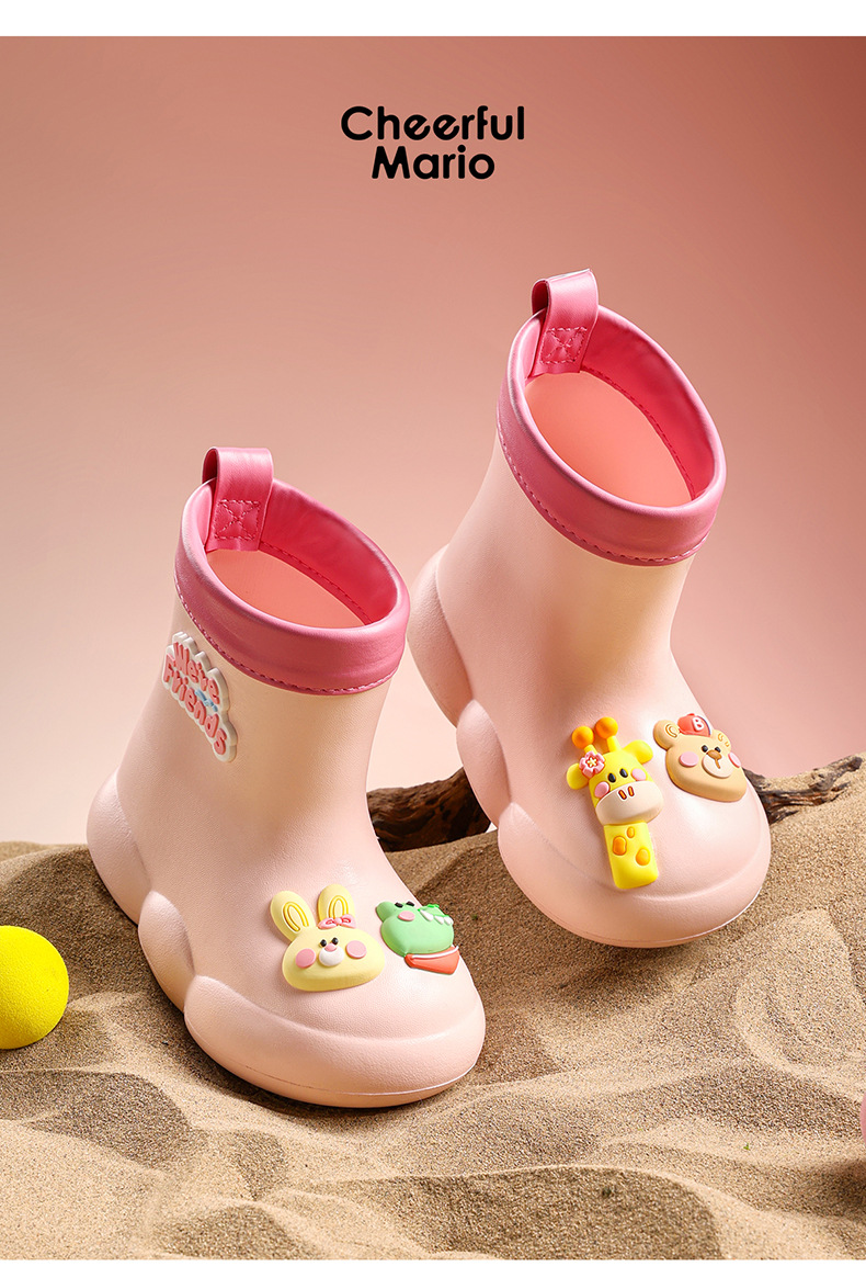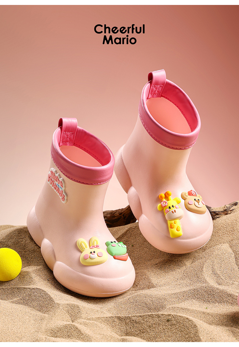 소년과 소녀를위한 해피 메리 어린이 비 신발 미끄럼 방지 경량 아기 4 계절 만화 방수 고무 신발 물 신발