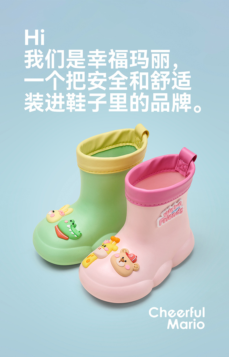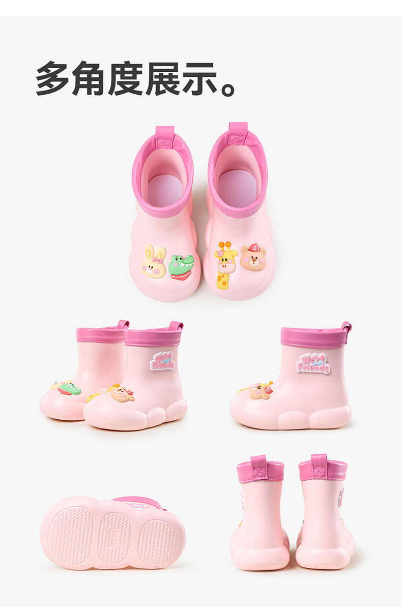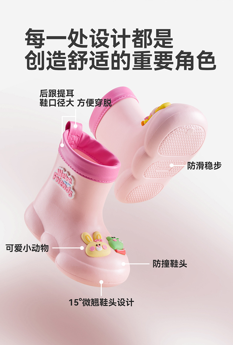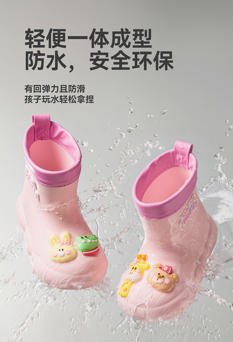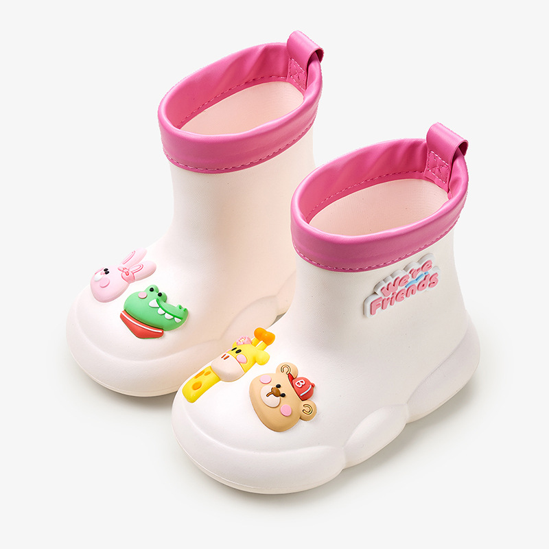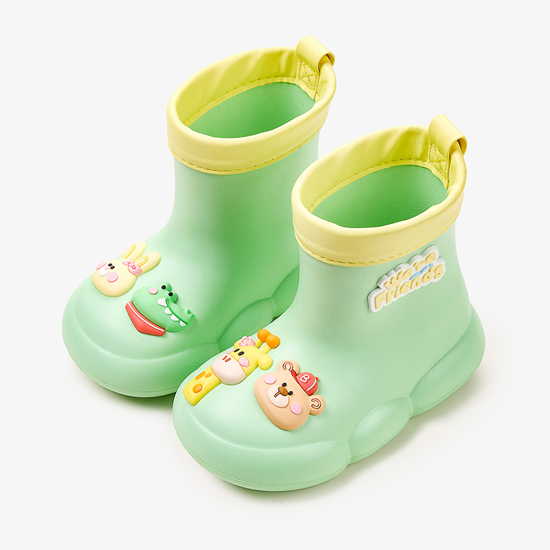 소년과 소녀를위한 해피 메리 어린이 비 신발 미끄럼 방지 경량 아기 4 계절 만화 방수 고무 신발 물 신발
