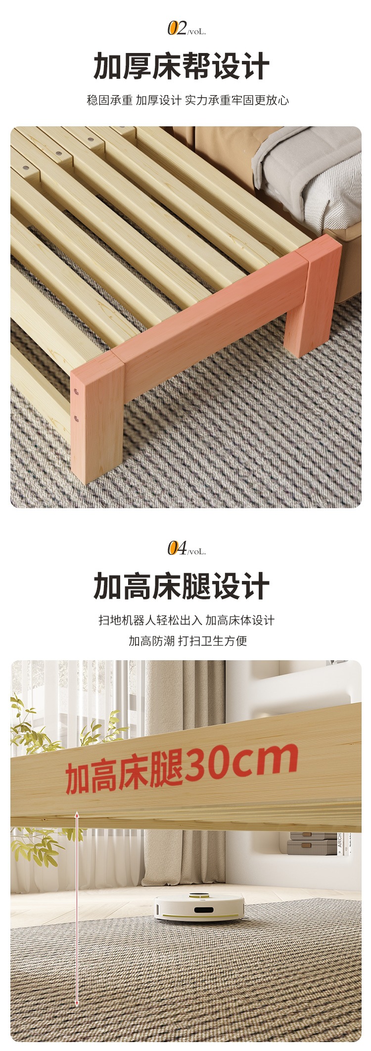 • 전체 원목 폭 60*길이(110-200cm) + 매트리스
