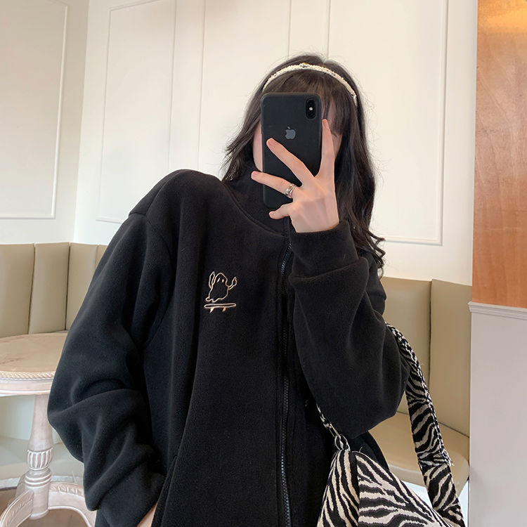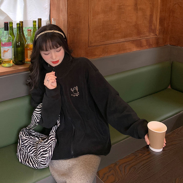 거대한 따뜻한 작은 스토브 두꺼운 올리 벨벳 자수 터틀넥 지퍼 스웨터 카디건 여성의 따뜻한 벨벳 스웨터 폴라 벨벳 재킷스토어 가기
