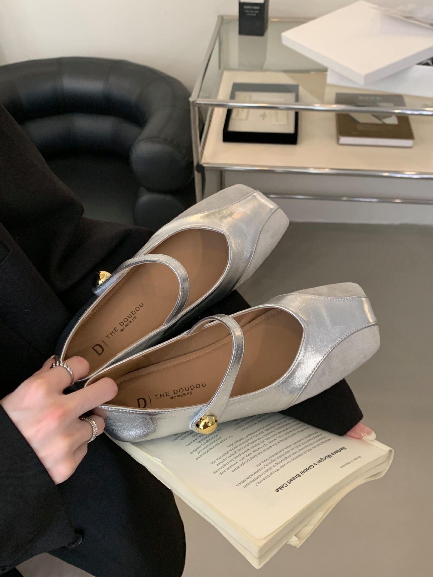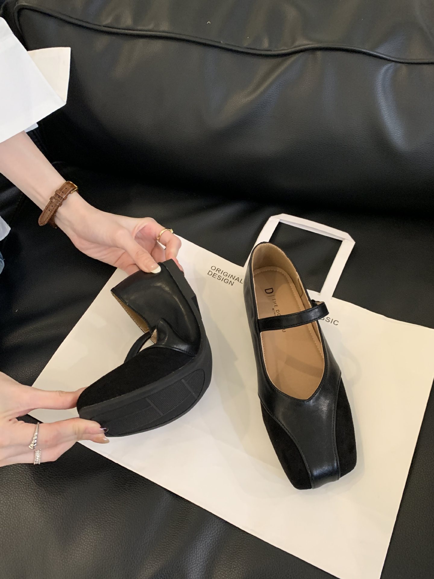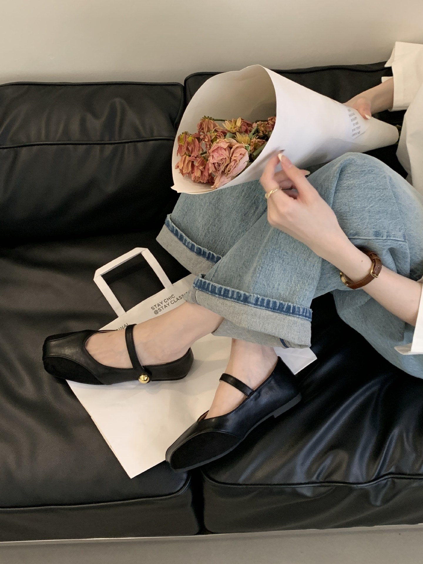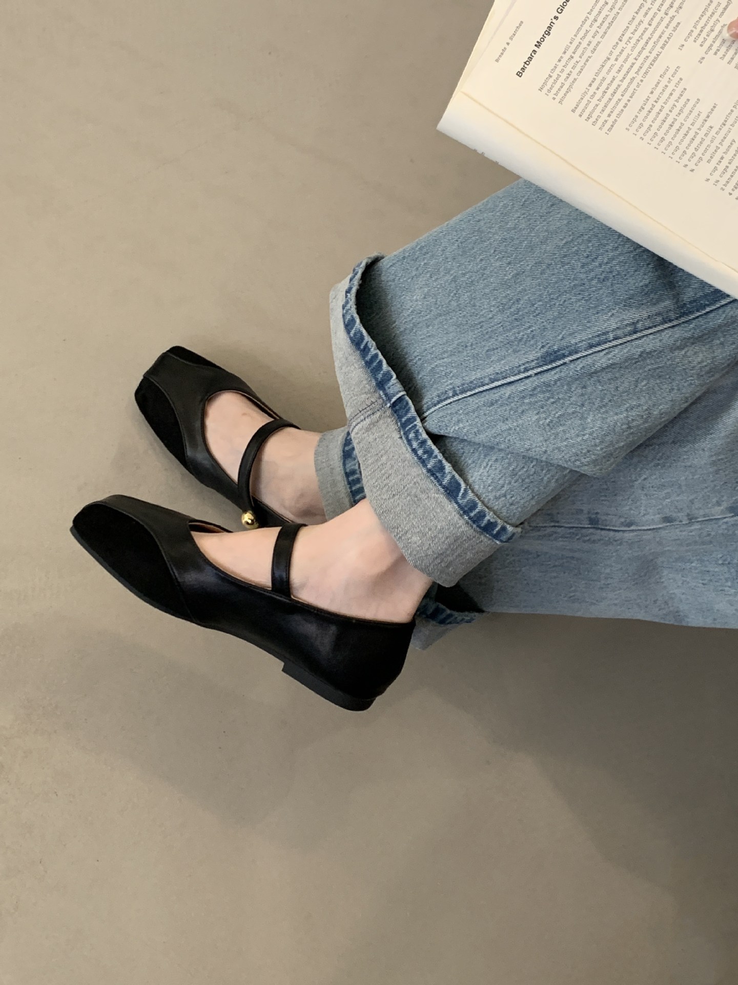 콩! 프랑스 틈새 디자인 캐주얼 발레 신발 올 매치 벨크로 플랫 신발 스퀘어 발가락 메리 제인 신발