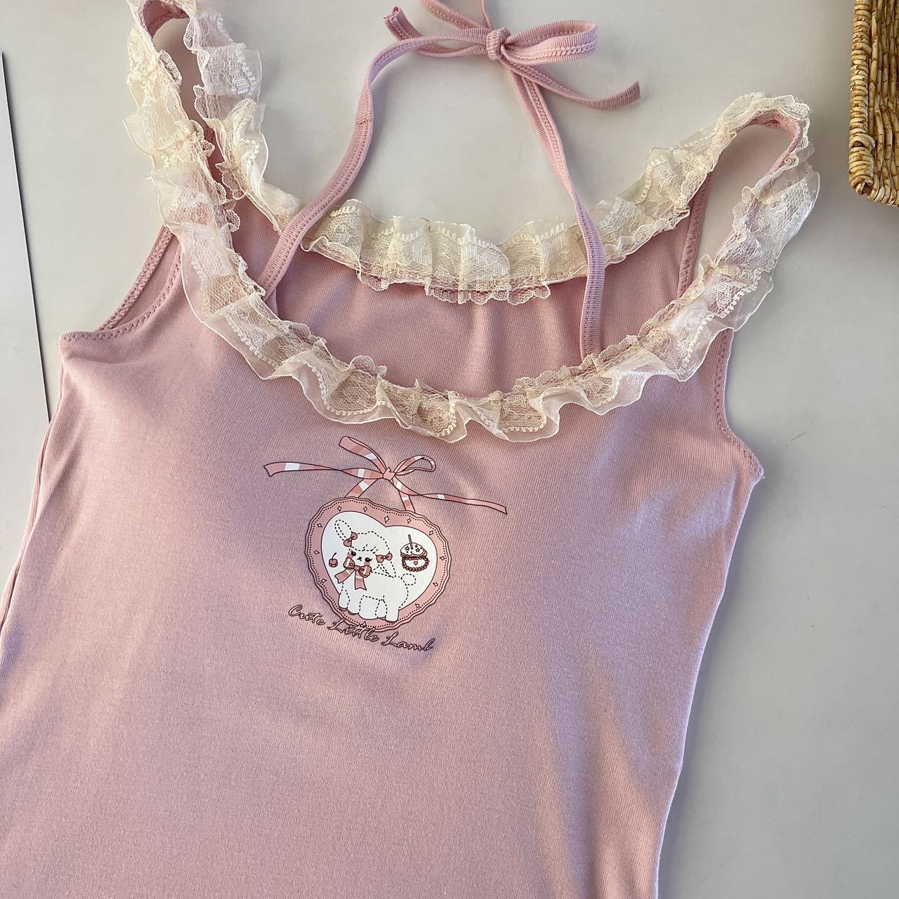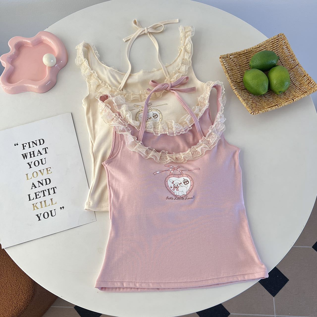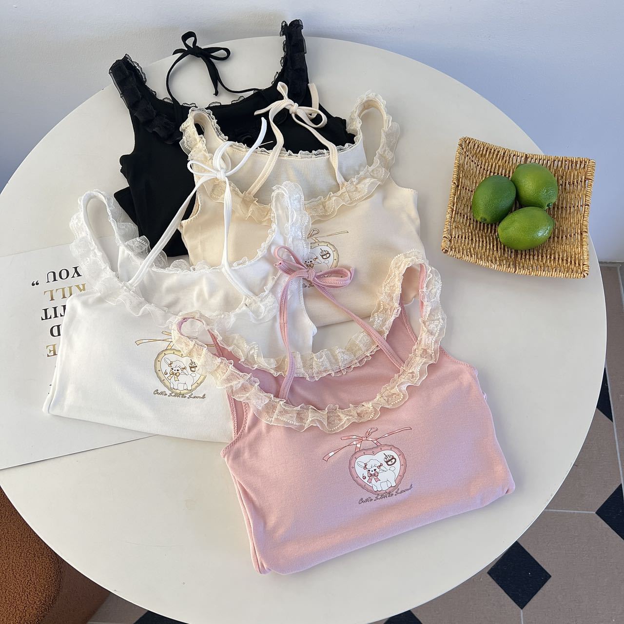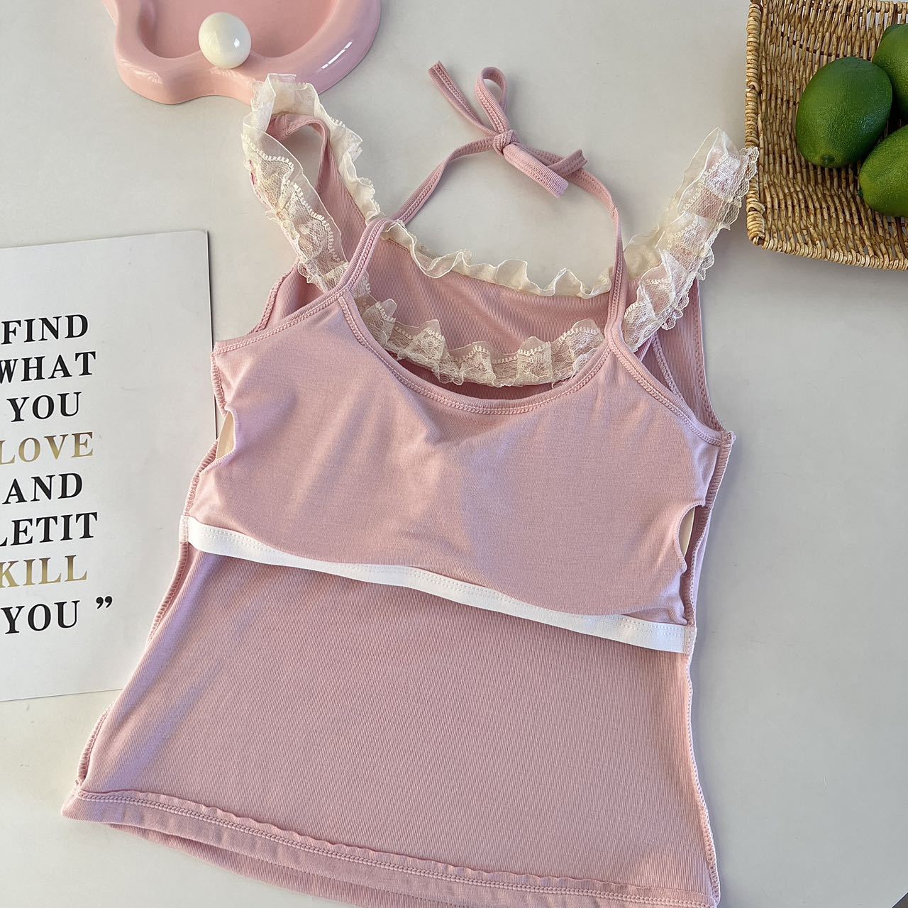 1816 # 새로운 스타일 코튼 넥 양고기 슬링 레이스 인쇄 짧은 상단 여성용 가슴 패드스토어 가기