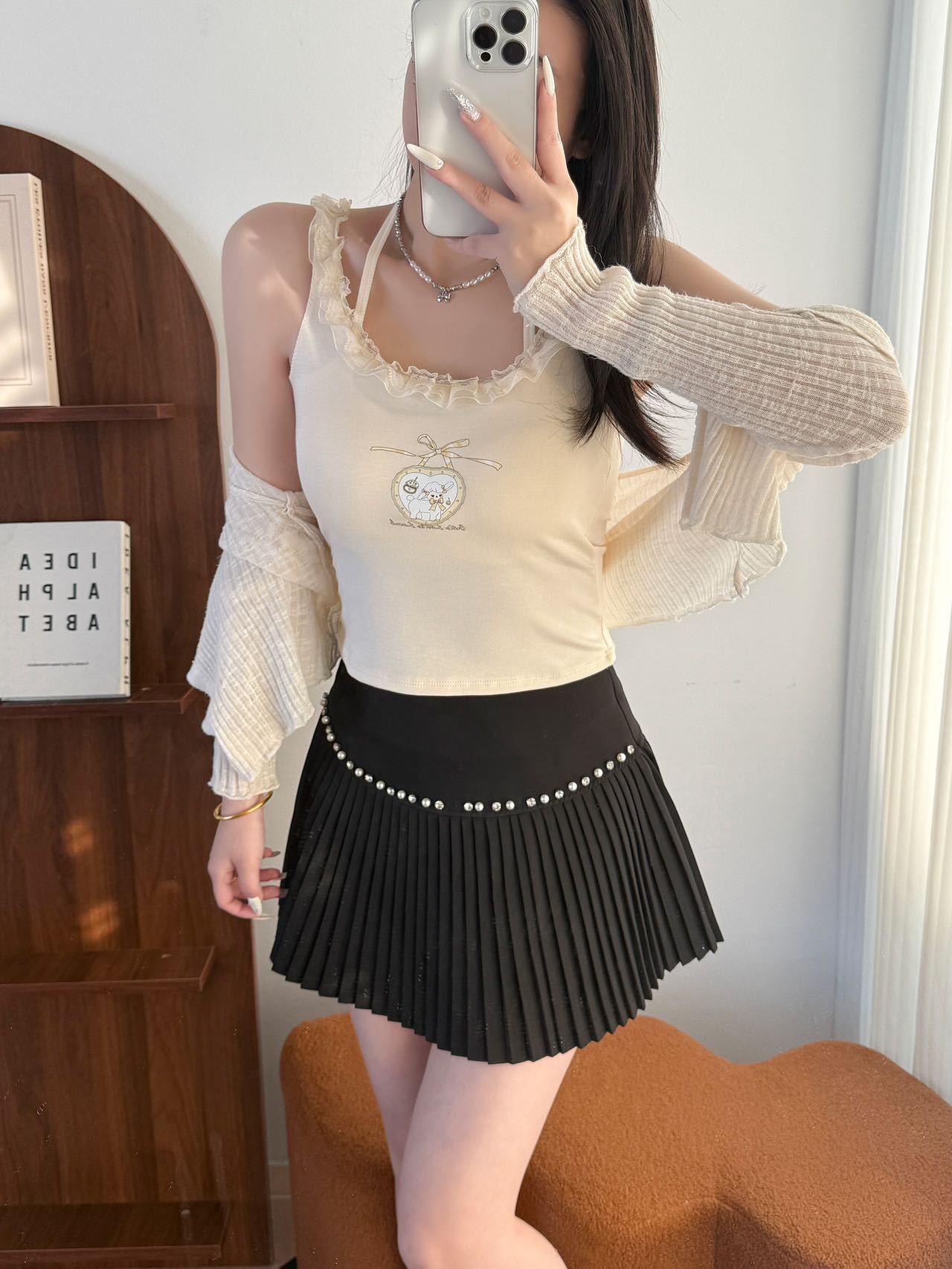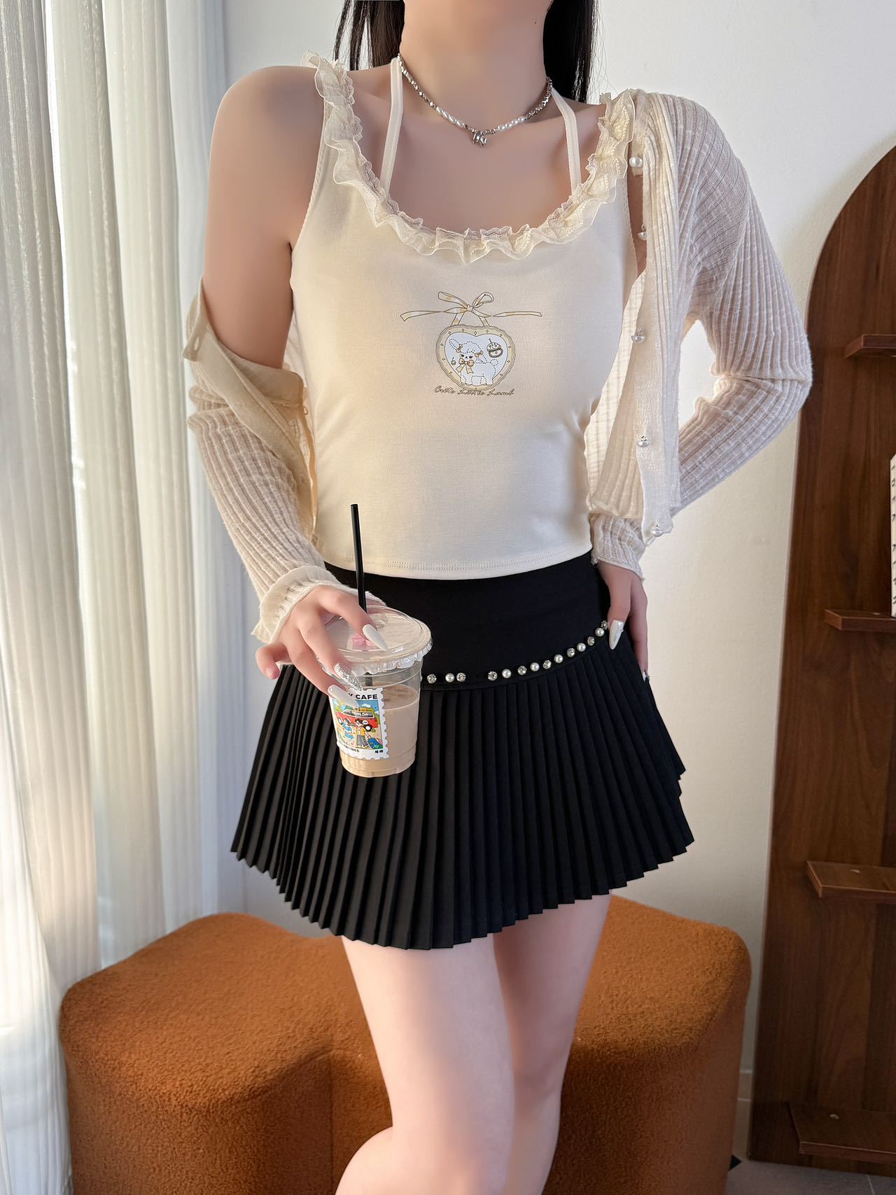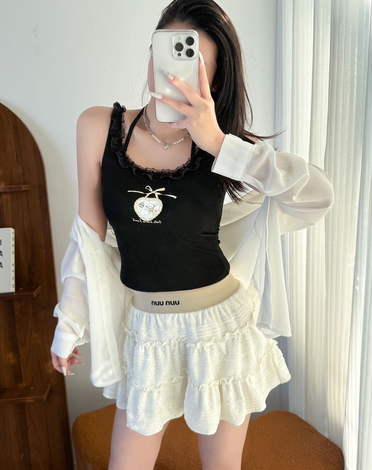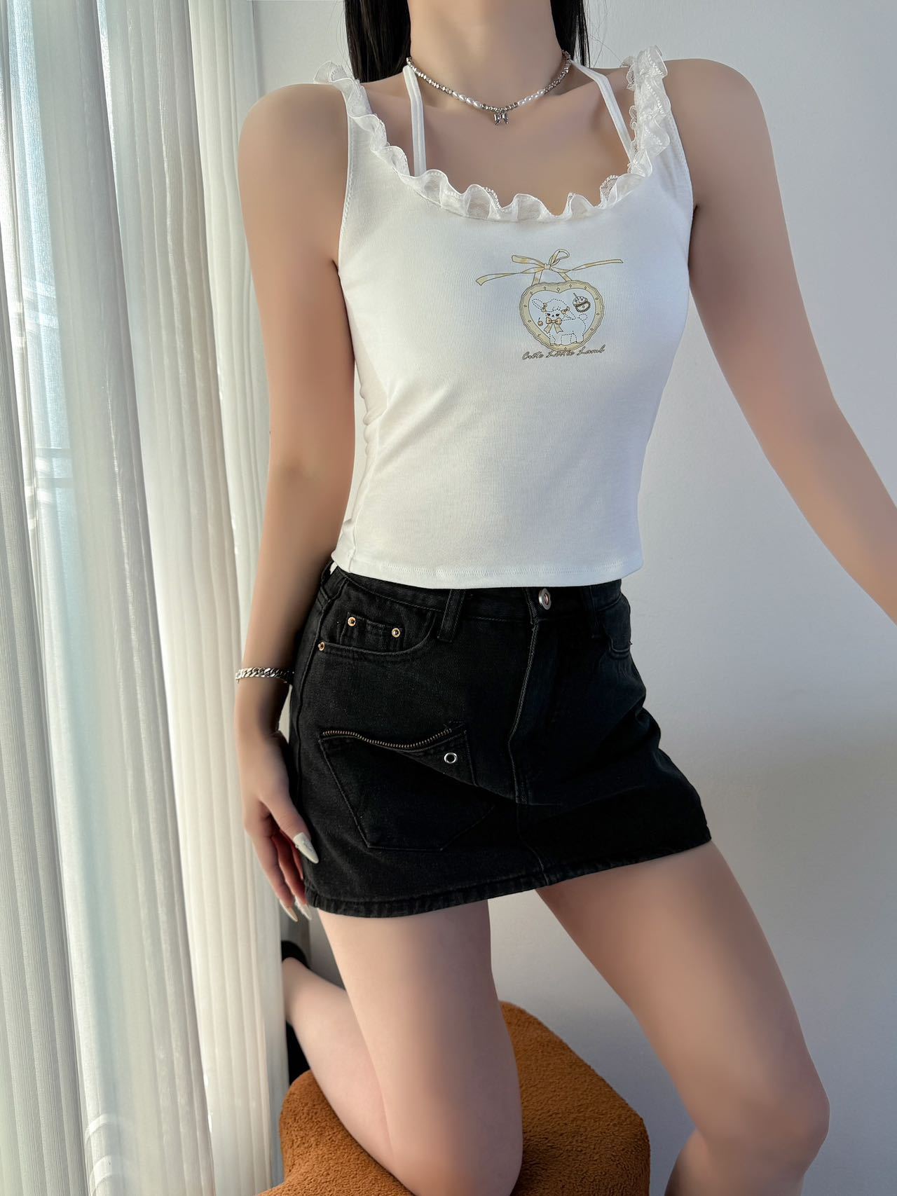 1816 # 새로운 스타일 코튼 넥 양고기 슬링 레이스 인쇄 짧은 상단 여성용 가슴 패드스토어 가기