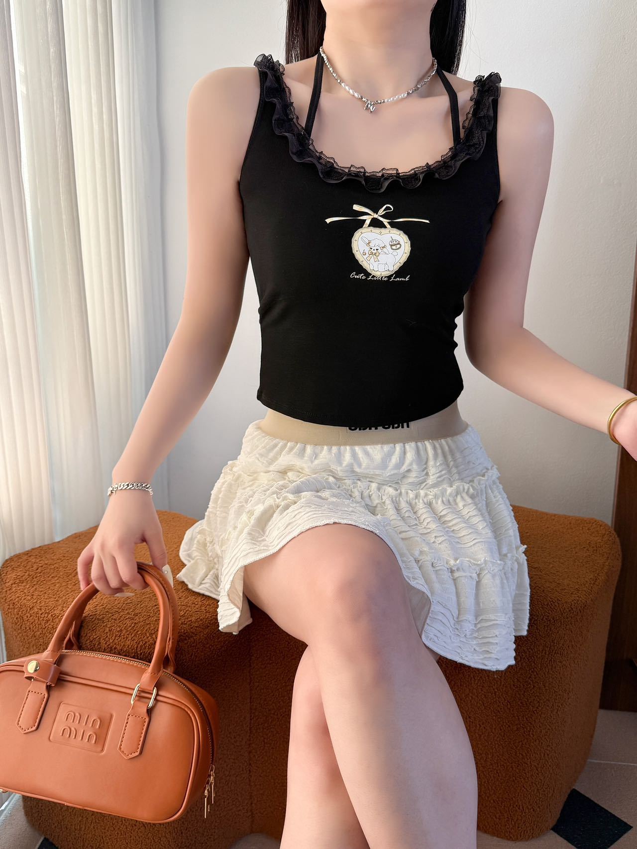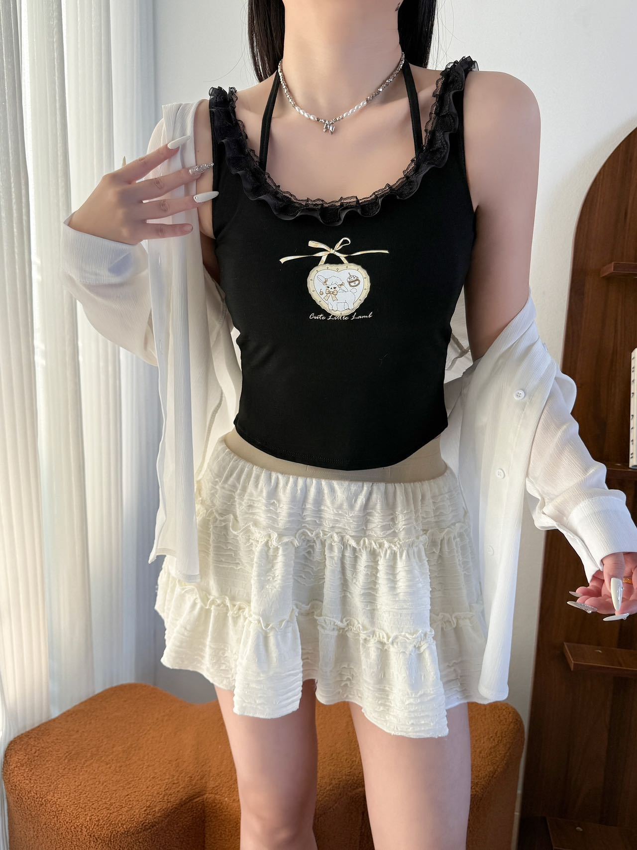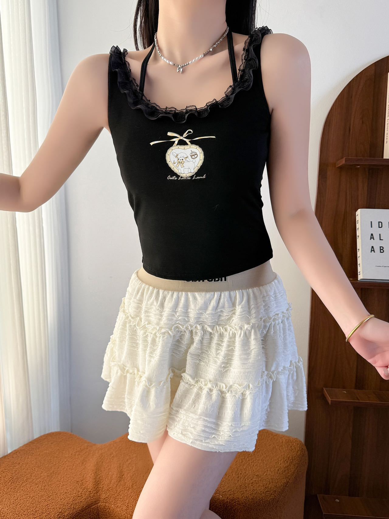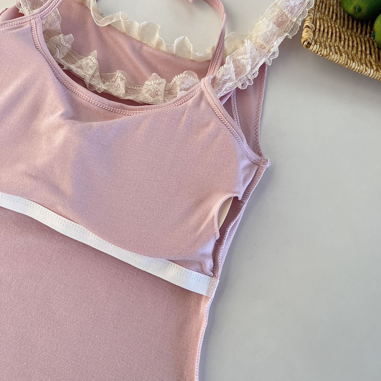 1816 # 새로운 스타일 코튼 넥 양고기 슬링 레이스 인쇄 짧은 상단 여성용 가슴 패드