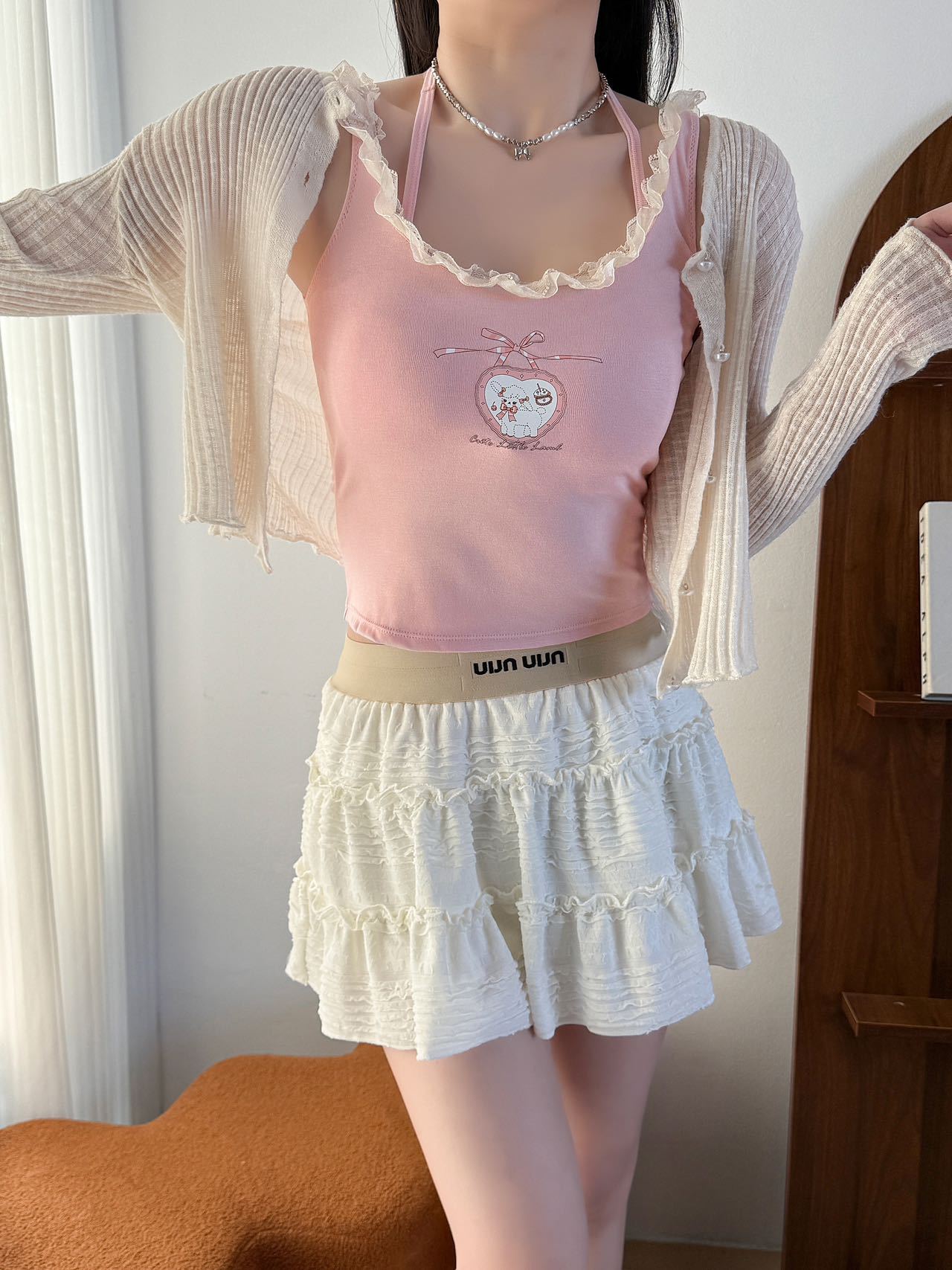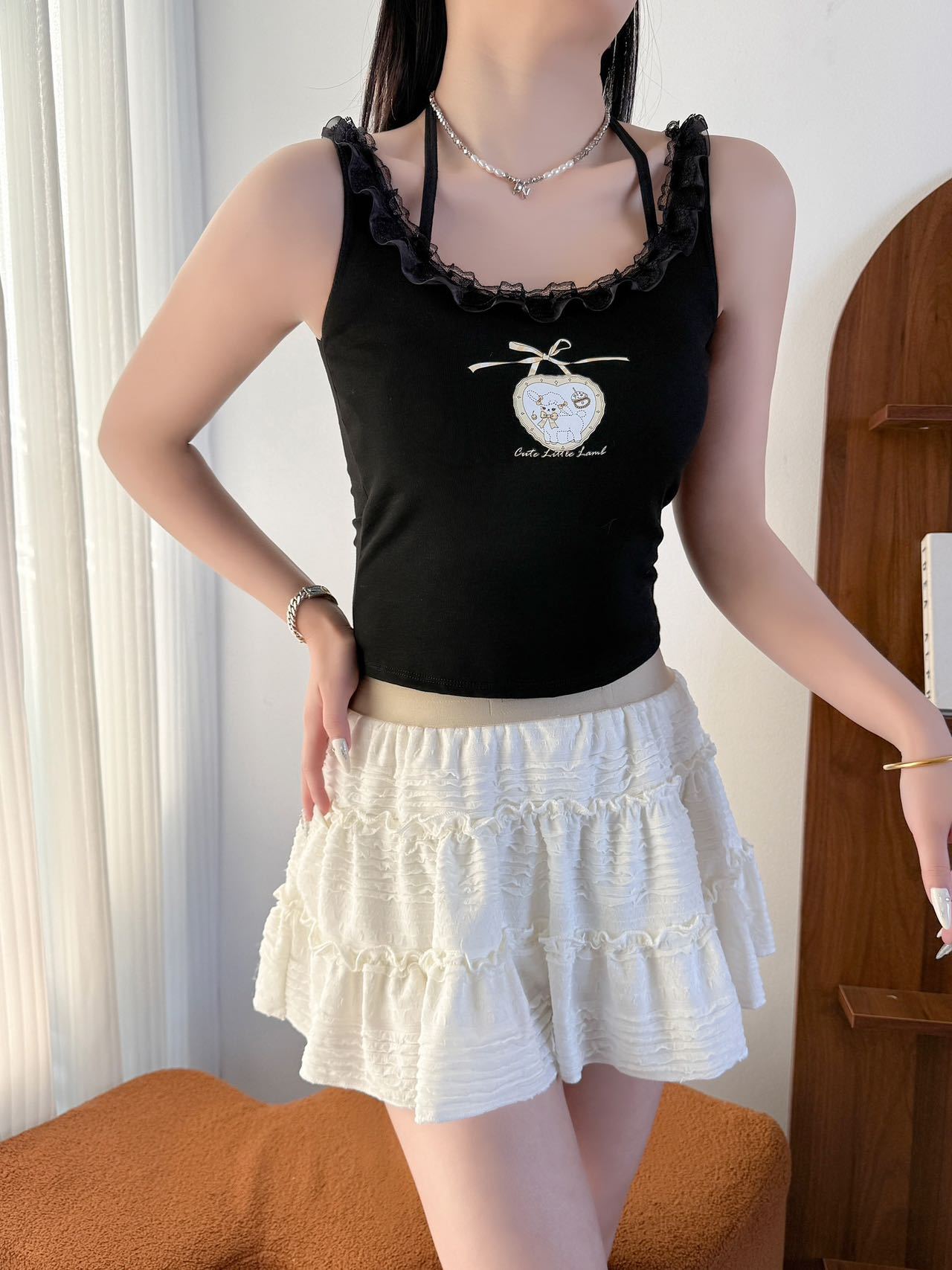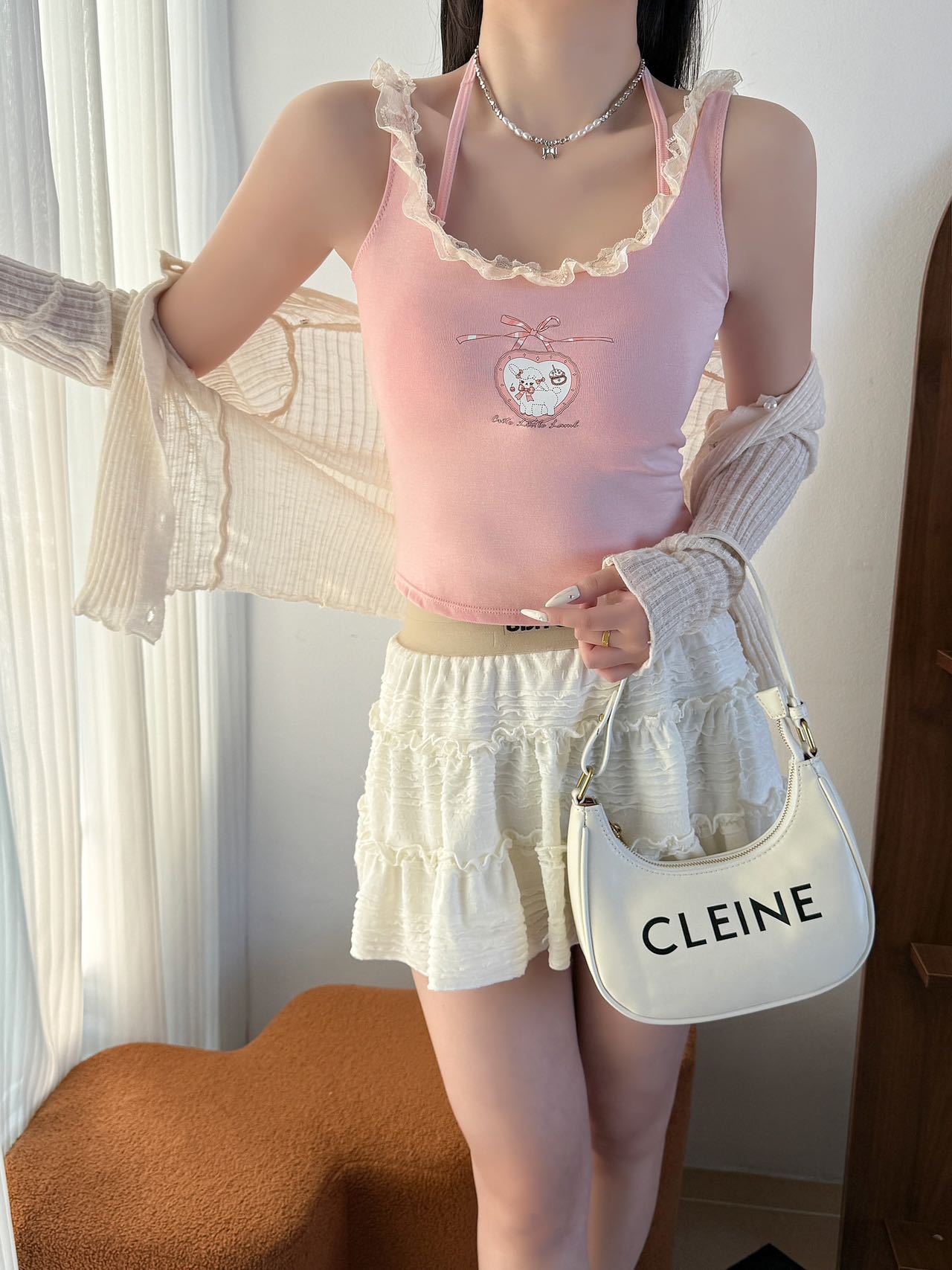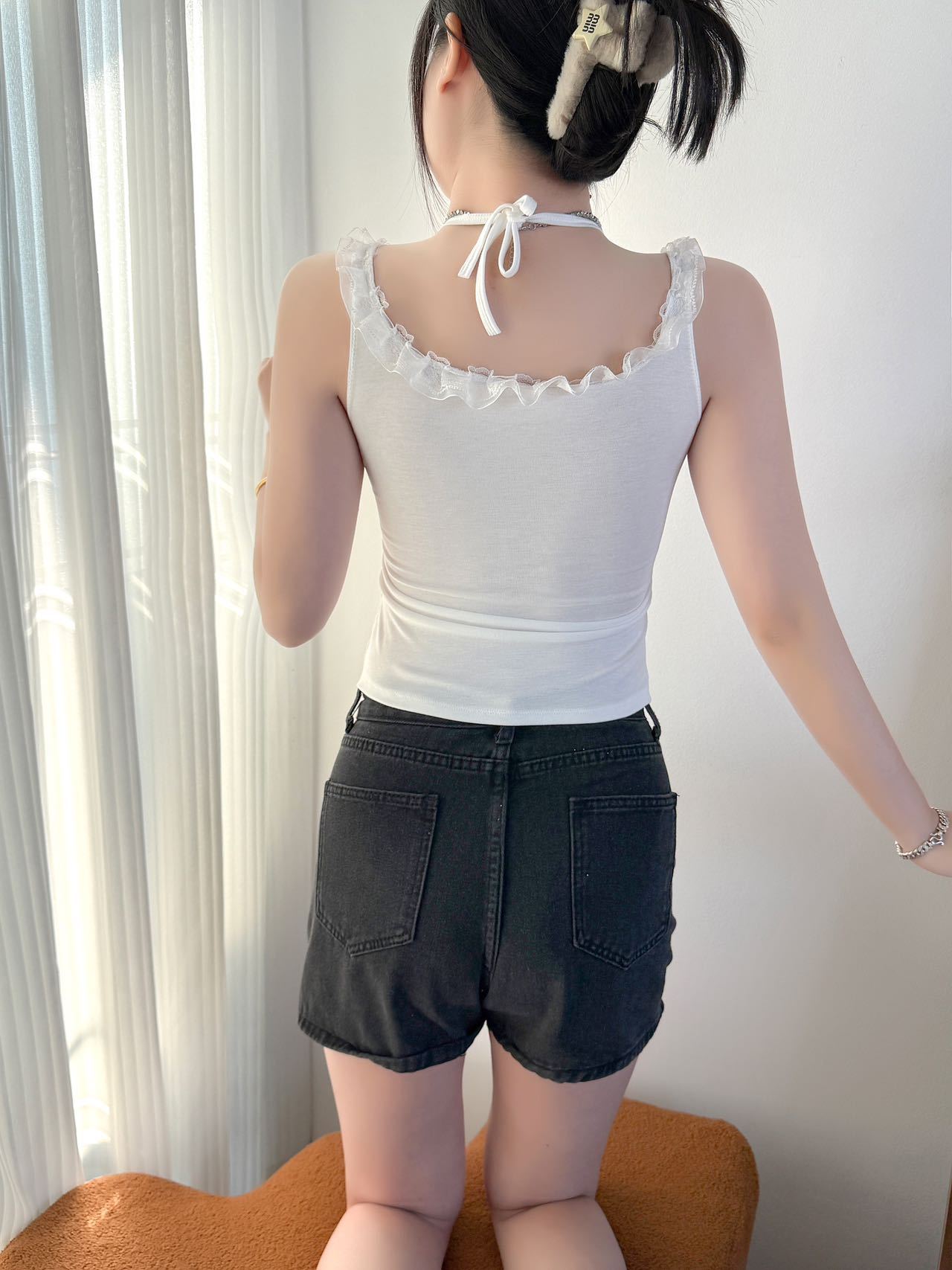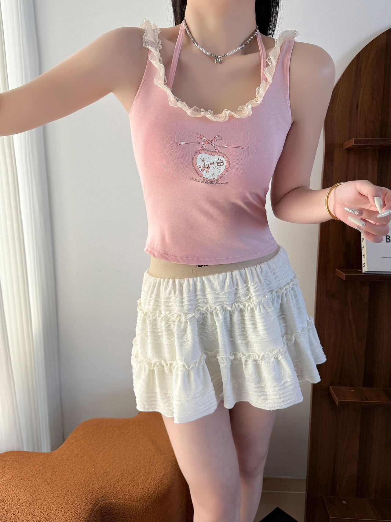 1816 # 새로운 스타일 코튼 넥 양고기 슬링 레이스 인쇄 짧은 상단 여성용 가슴 패드