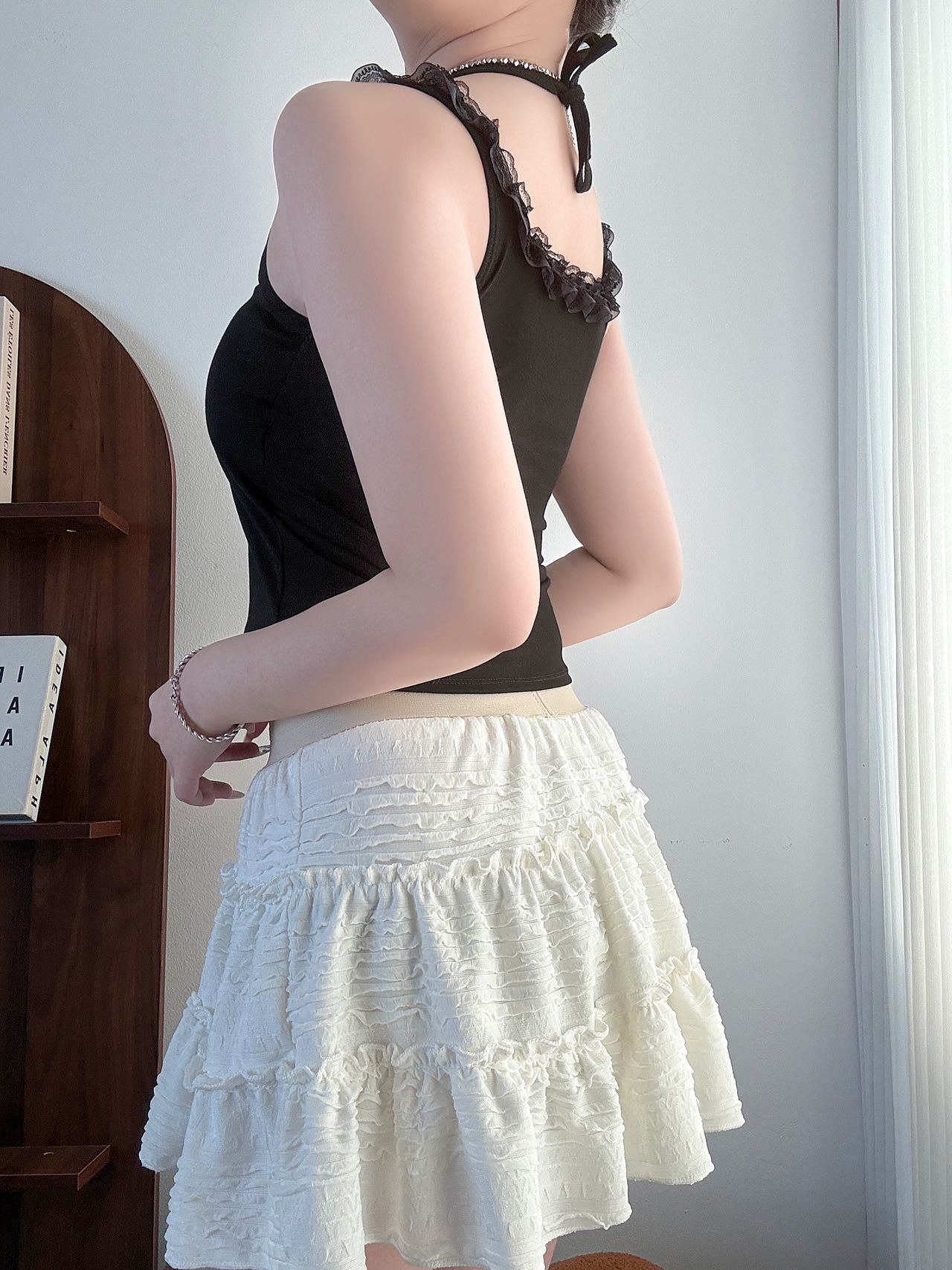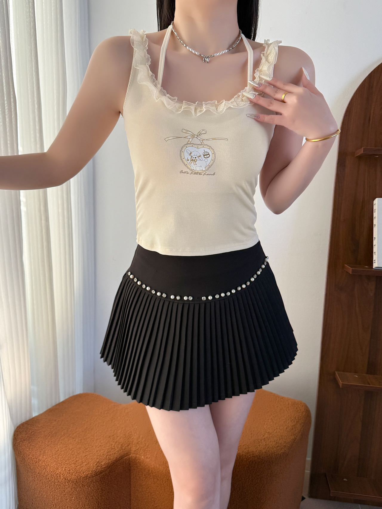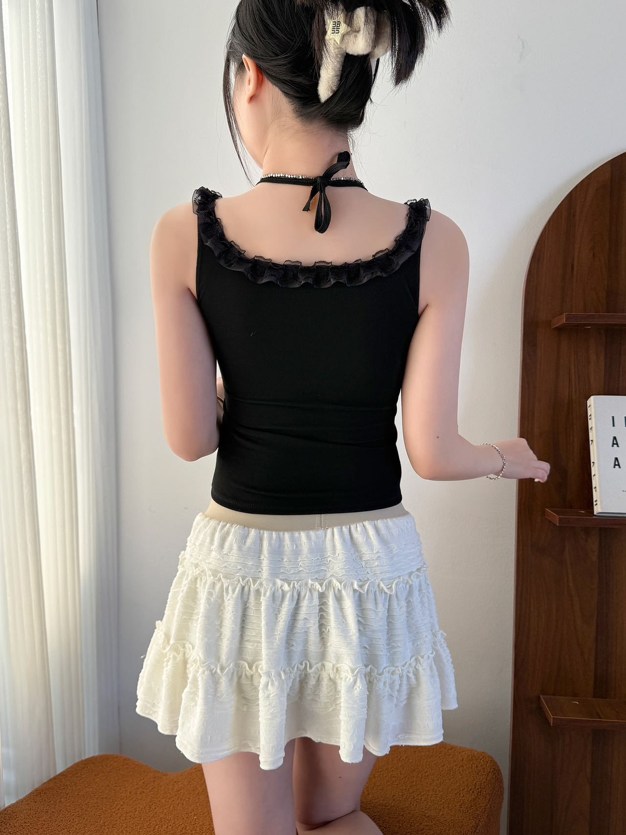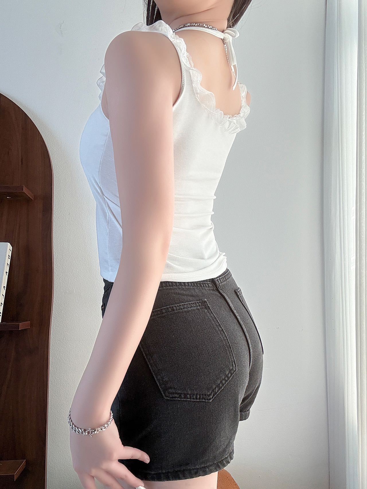 1816 # 새로운 스타일 코튼 넥 양고기 슬링 레이스 인쇄 짧은 상단 여성용 가슴 패드