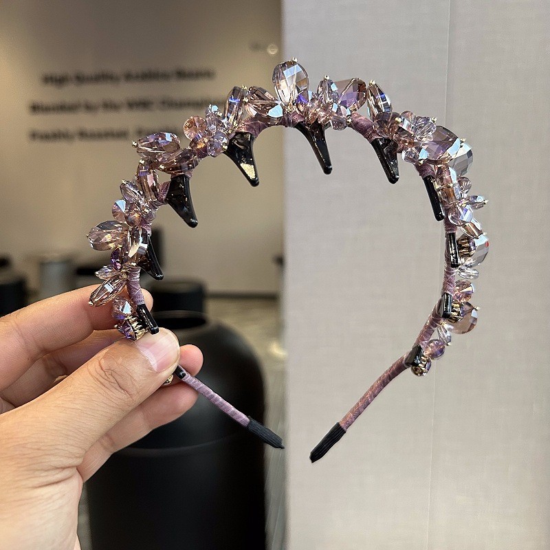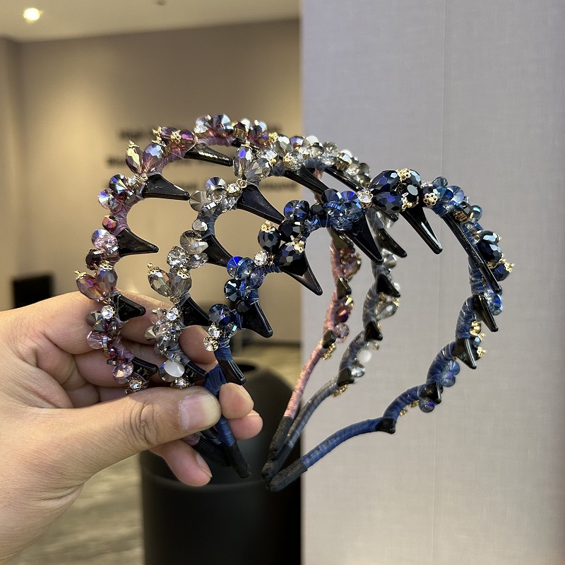 한국 크리스탈 치팅 라이트 럭셔리 풀 다이아몬드 머리띠 헤어 액세서리 간단한 우아한 레트로 올 매치 얇은 머리띠 헤어 클립 여성용 헤어 액세서리스토어 가기