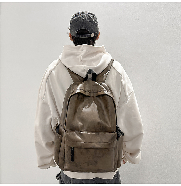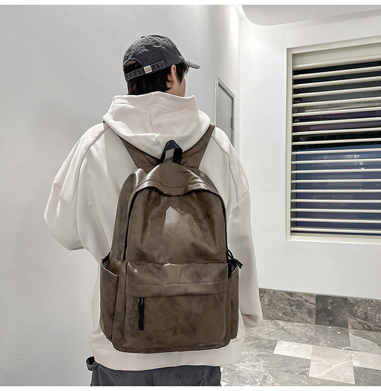 새로운 국경 학생 스쿨백 한국 스타일 유행 PU 가죽 다크 패턴 배낭 남성 대용량 컴퓨터 배낭