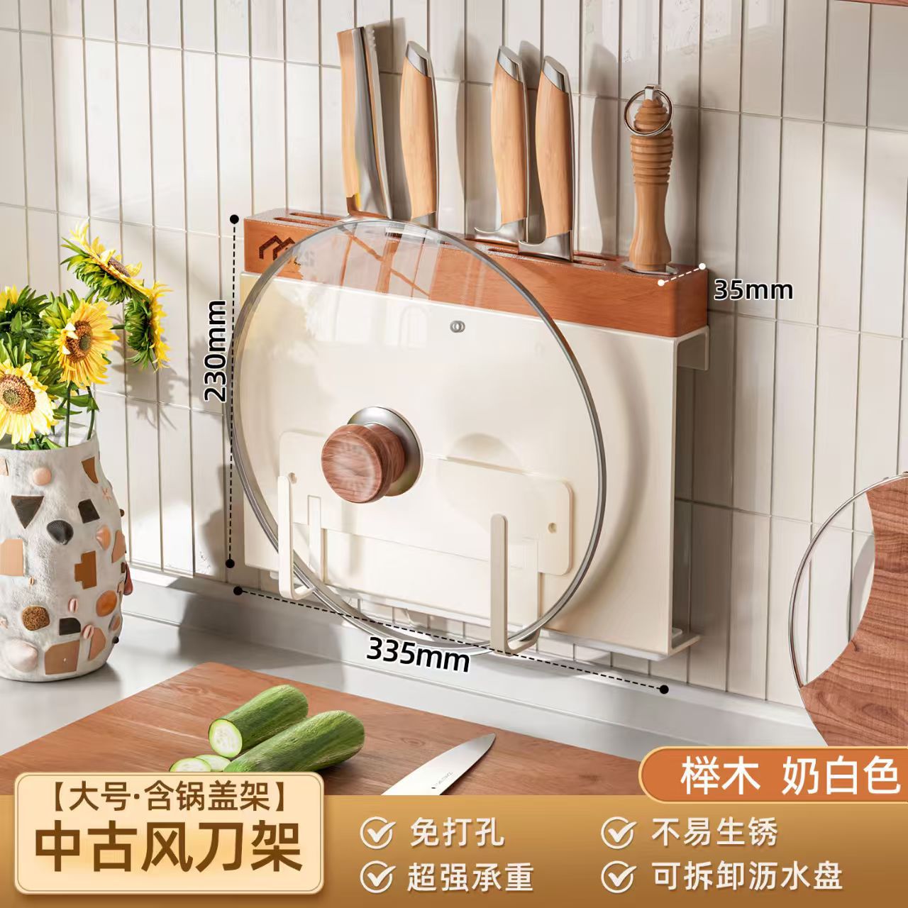 골동품 크림 화이트 나이프 홀더 벽 교수형 너도밤 나이프 홀더 가벼운 고급 주방 칼 보관 랙 주방 나이프 젓가락 케이지 보관 랙