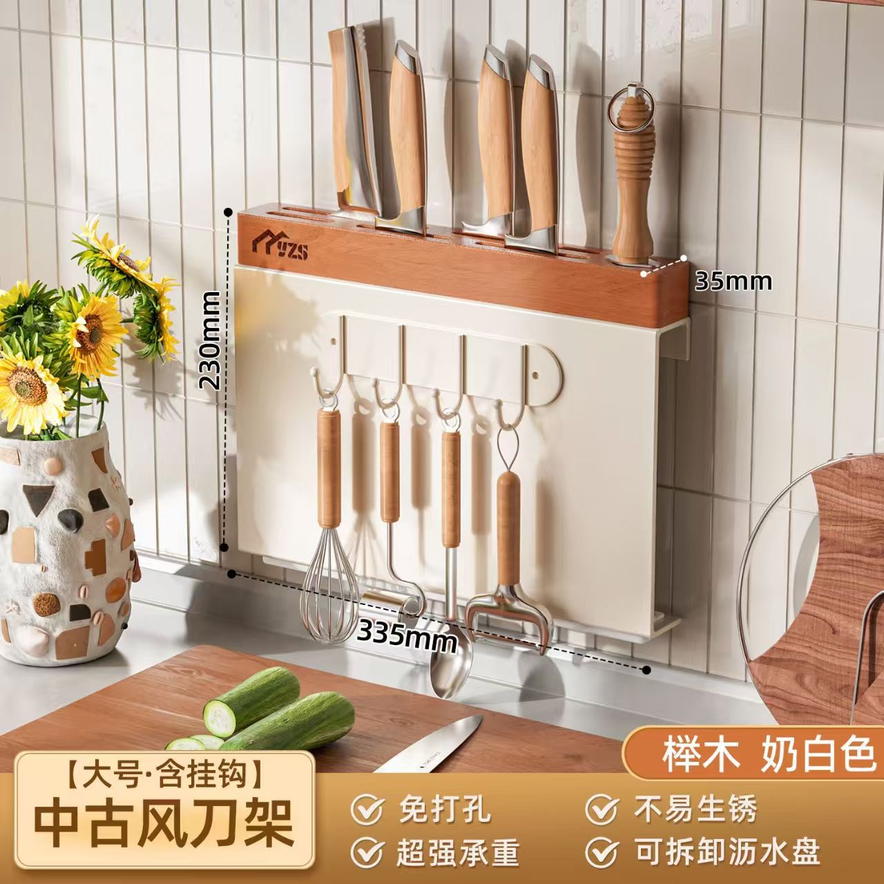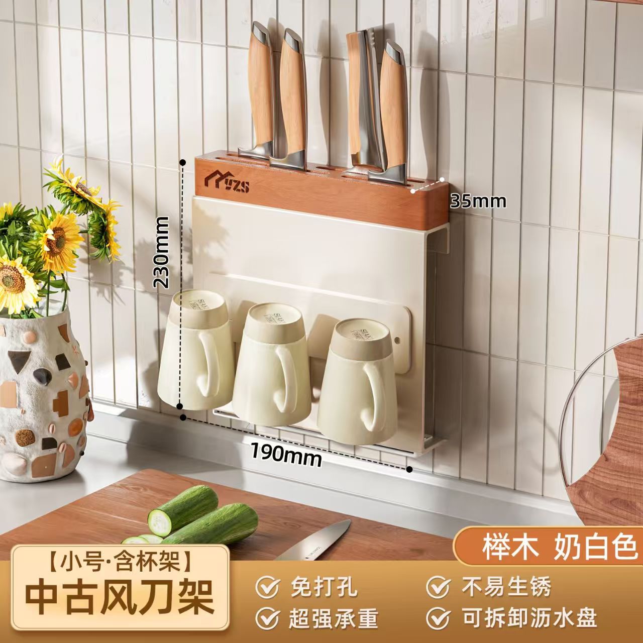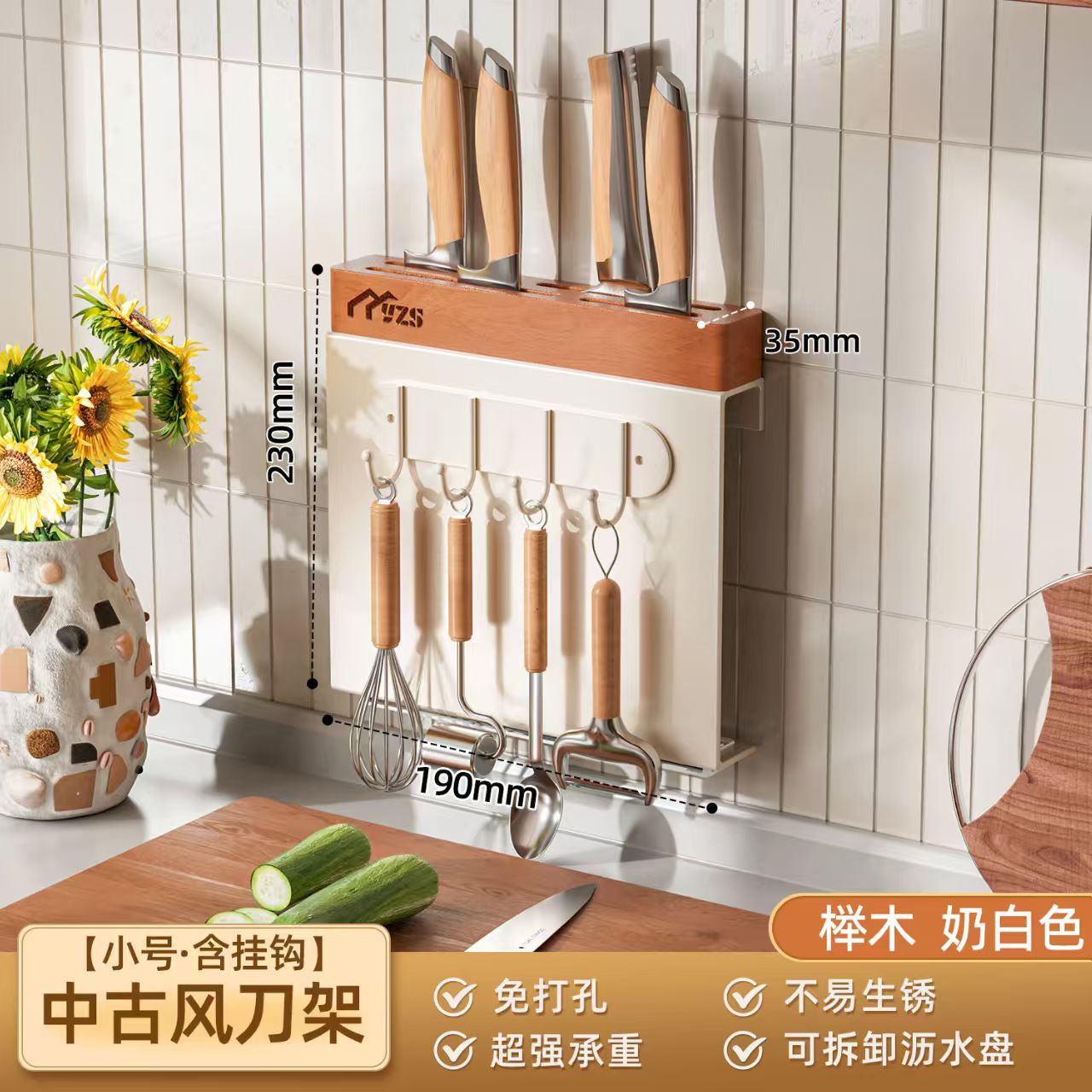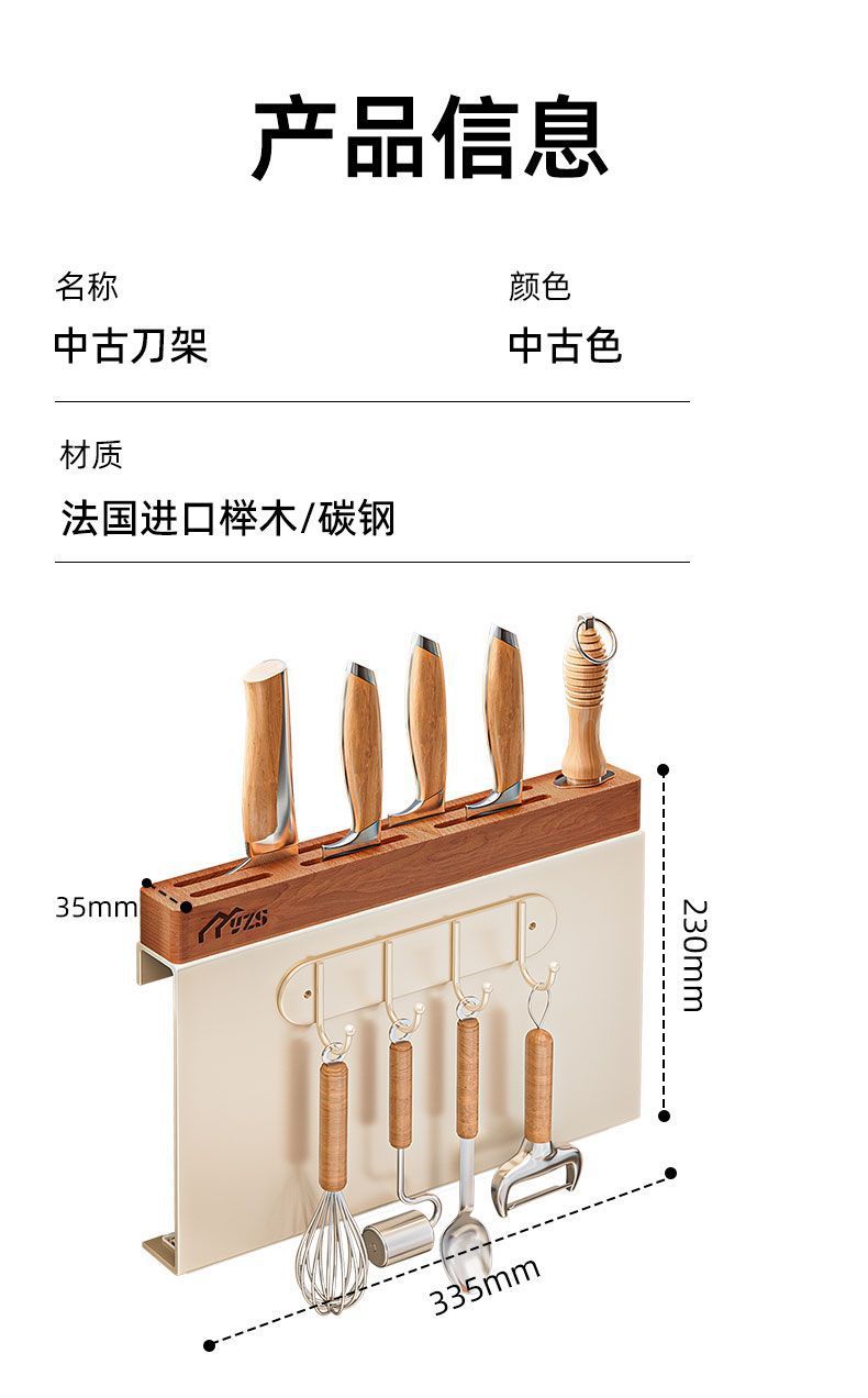 골동품 크림 화이트 나이프 홀더 벽 교수형 너도밤 나이프 홀더 가벼운 고급 주방 칼 보관 랙 주방 나이프 젓가락 케이지 보관 랙스토어 가기