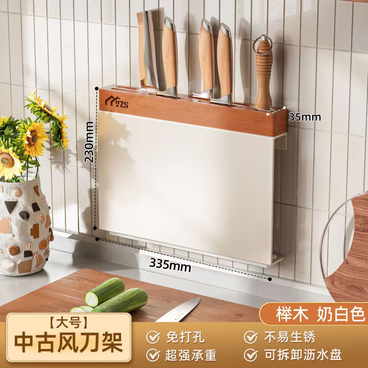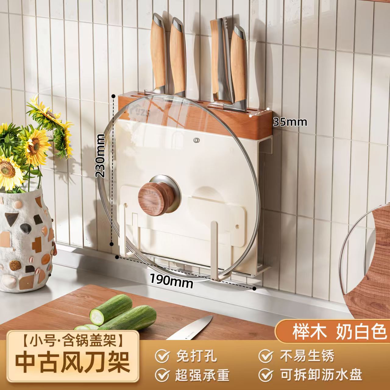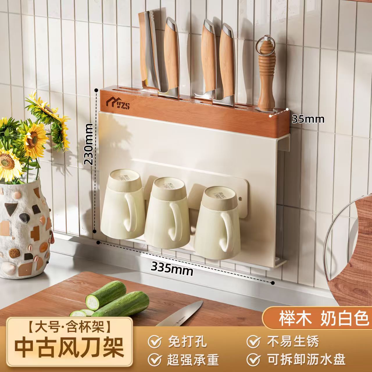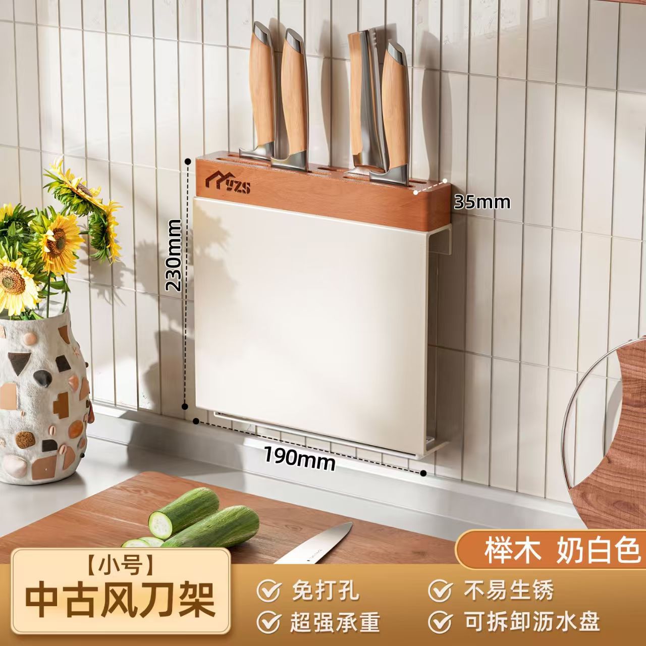 골동품 크림 화이트 나이프 홀더 벽 교수형 너도밤 나이프 홀더 가벼운 고급 주방 칼 보관 랙 주방 나이프 젓가락 케이지 보관 랙스토어 가기