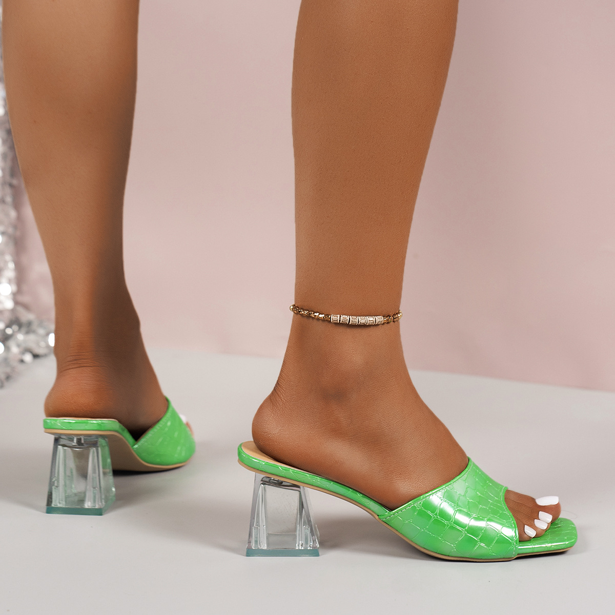 국경 간 플러스 사이즈 새로운 두꺼운 하이힐 사각 굽 슬리퍼 유럽과 미국 패션 섹시한 사각 굽 슬리퍼 여성 도매
