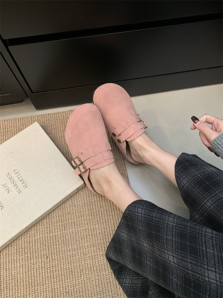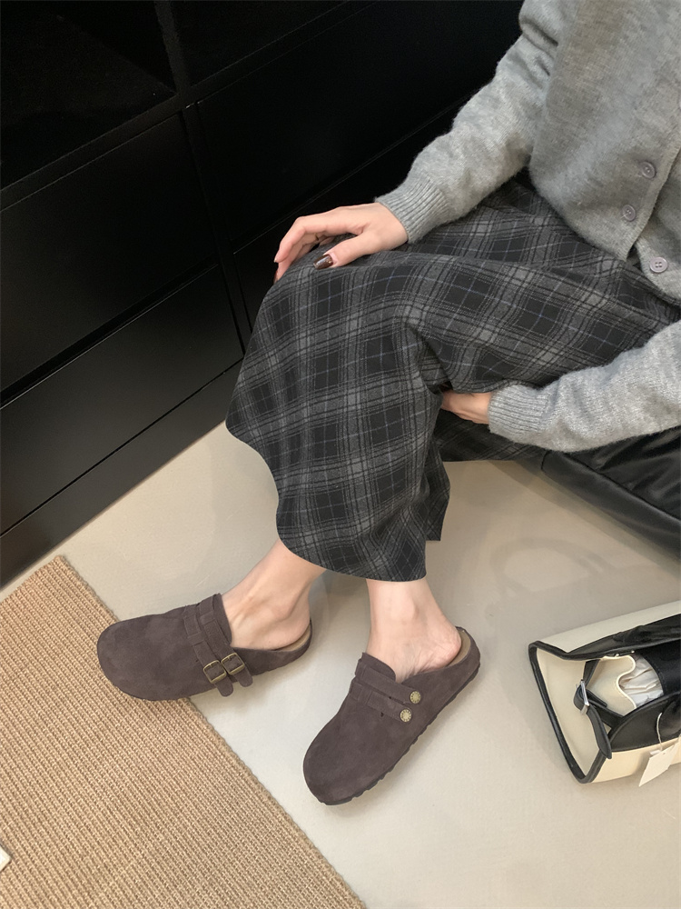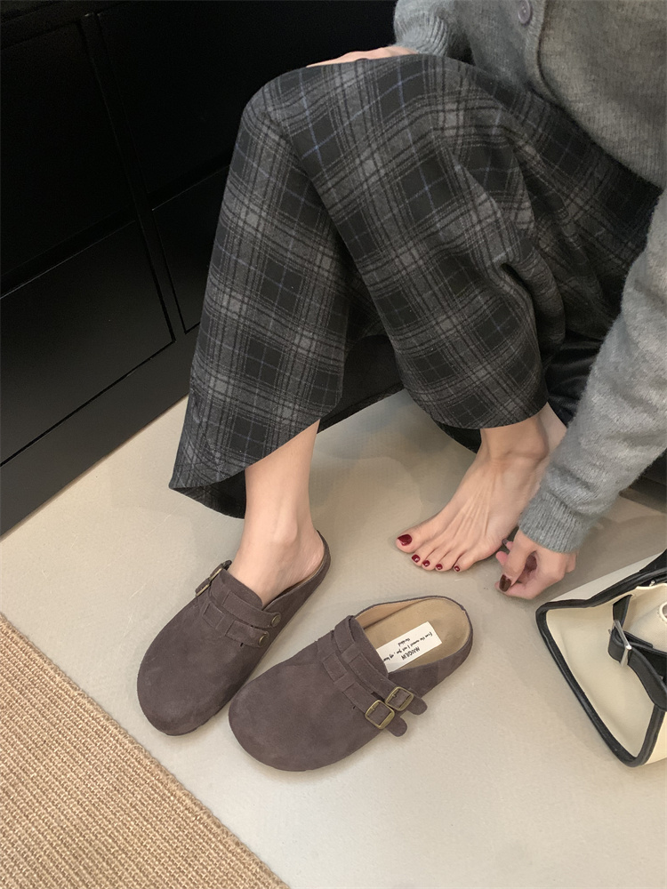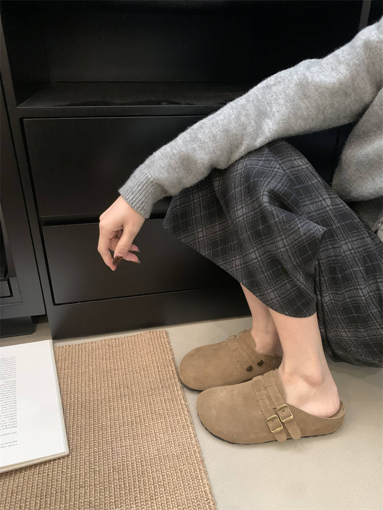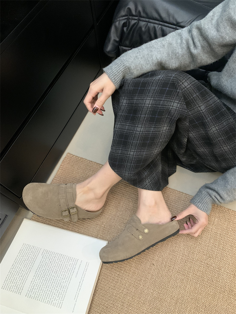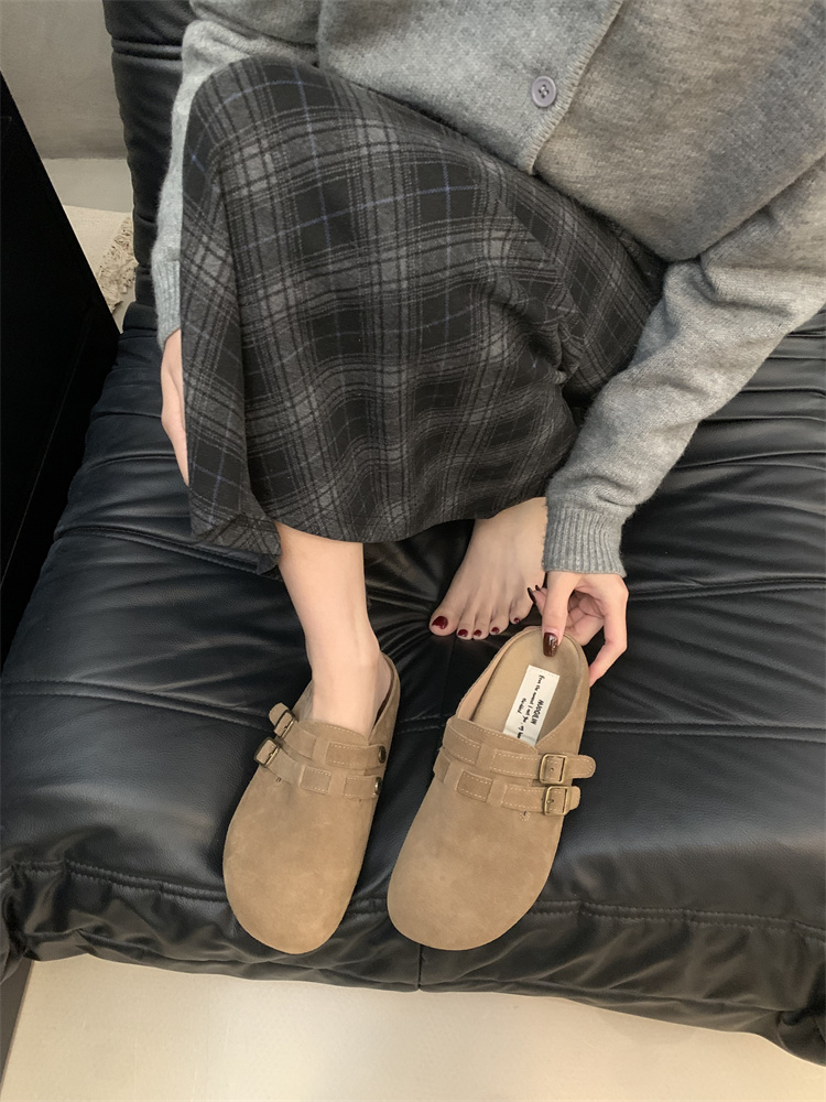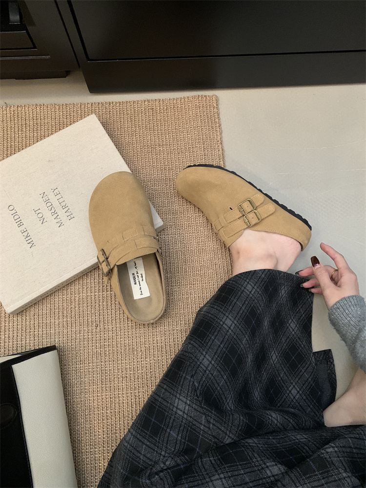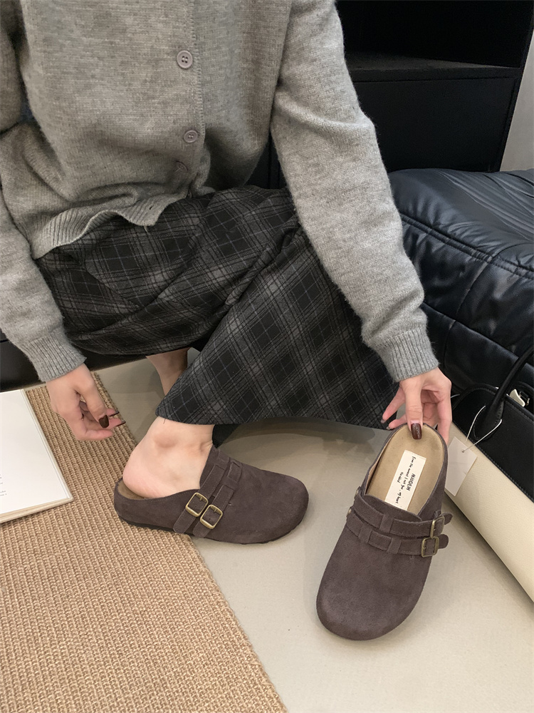 정품 가죽 비르칸 신발 여성 2025 신작 한국식 레트로 라운드 토 슬립 온 하프 슬리퍼 여성용 플랫 노새 신발스토어 가기