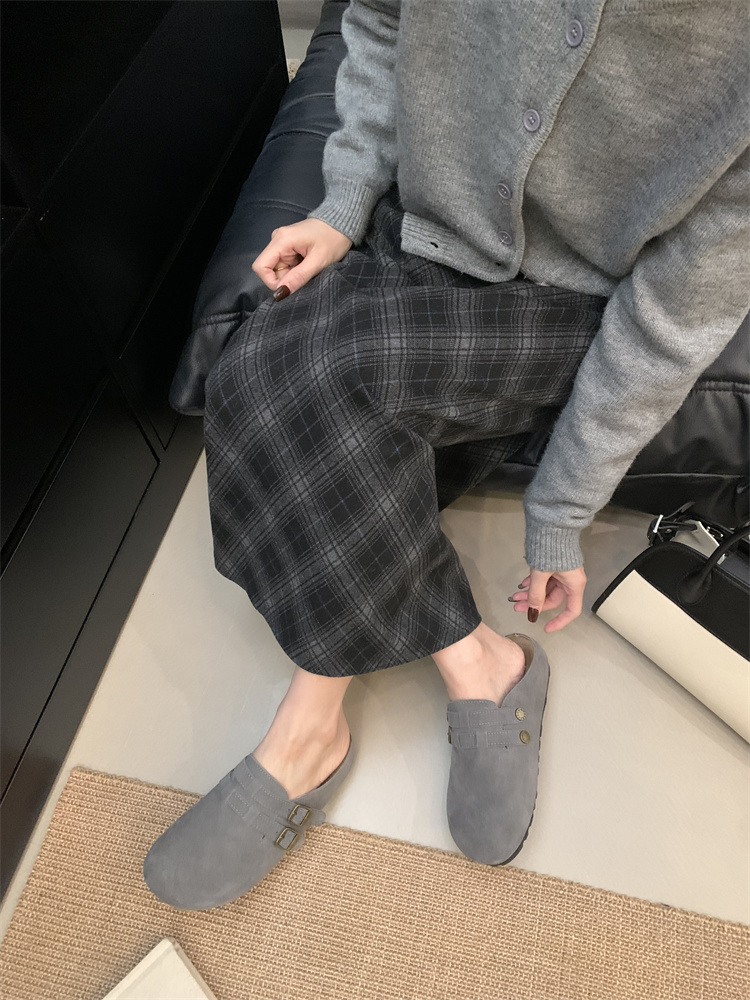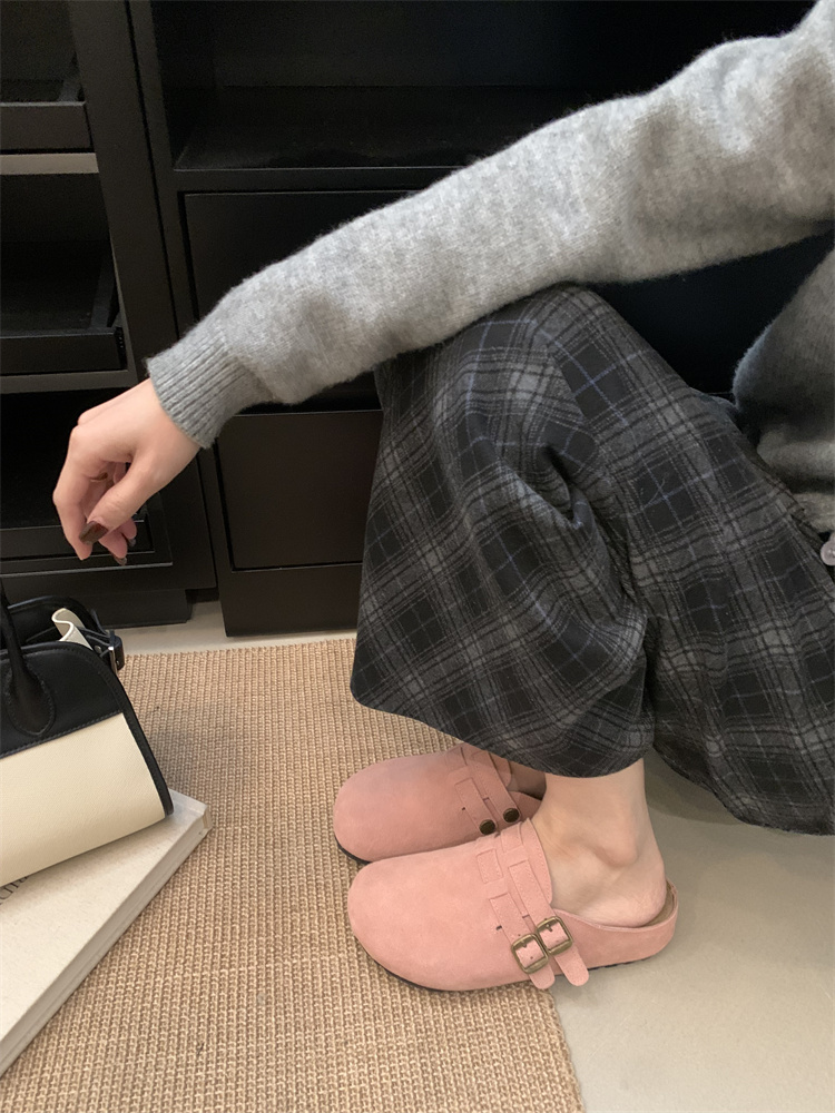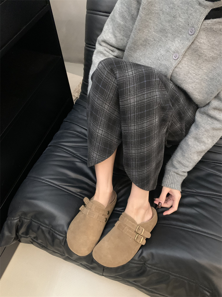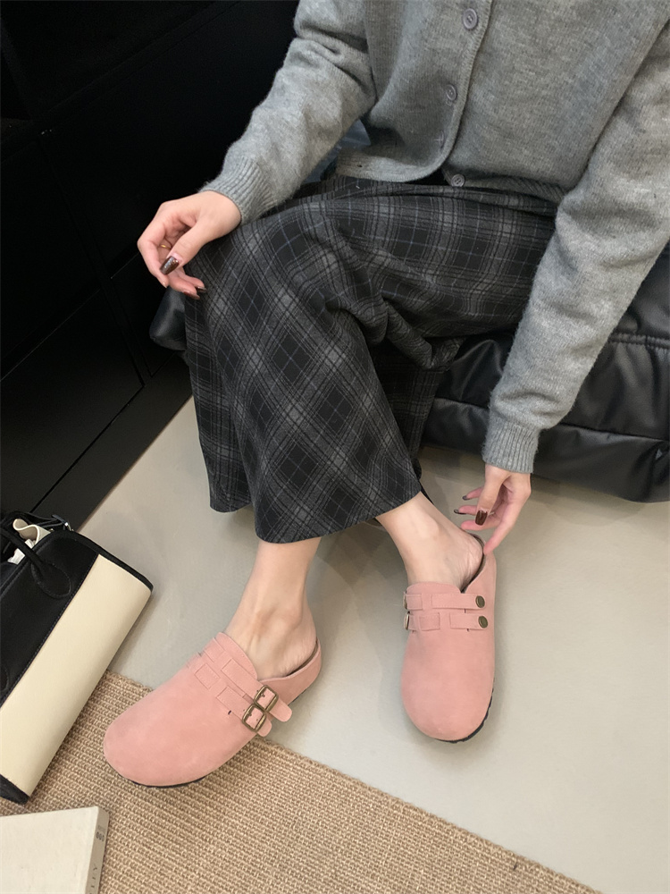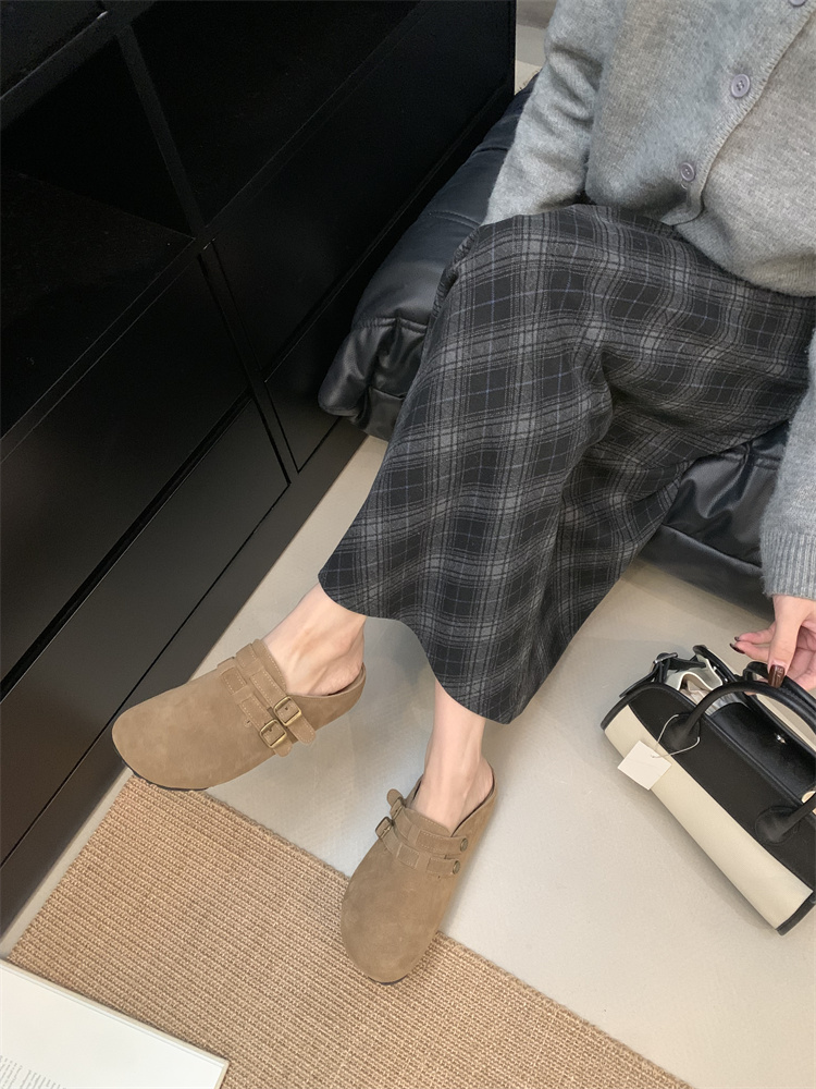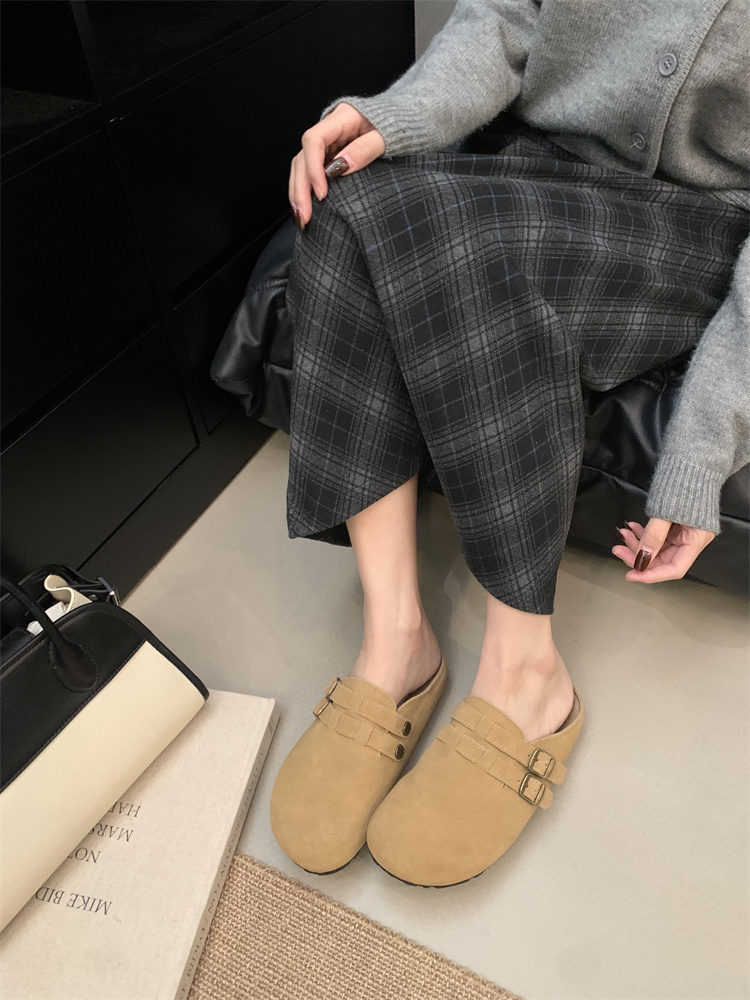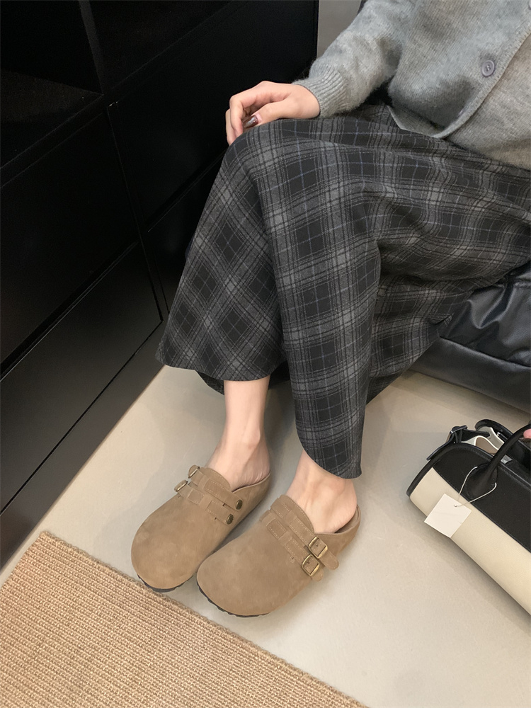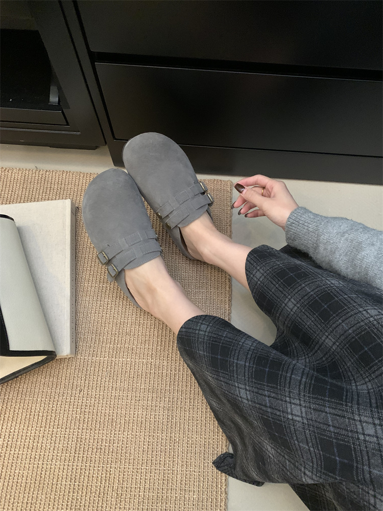 정품 가죽 비르칸 신발 여성 2025 신작 한국식 레트로 라운드 토 슬립 온 하프 슬리퍼 여성용 플랫 노새 신발스토어 가기