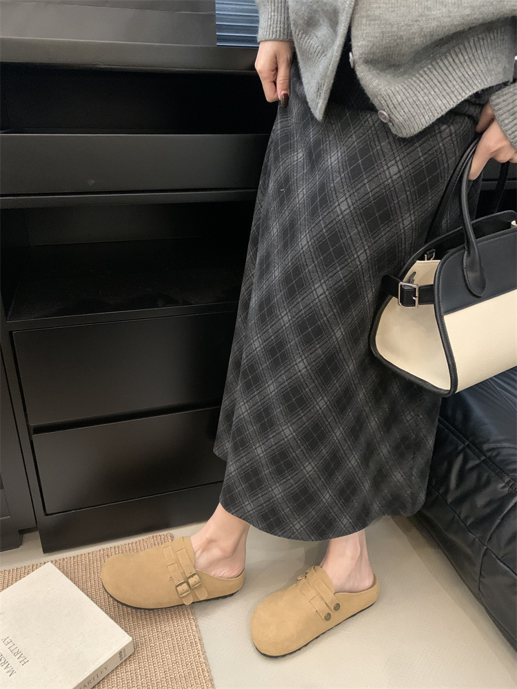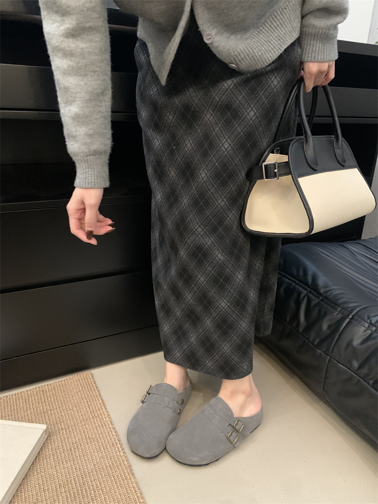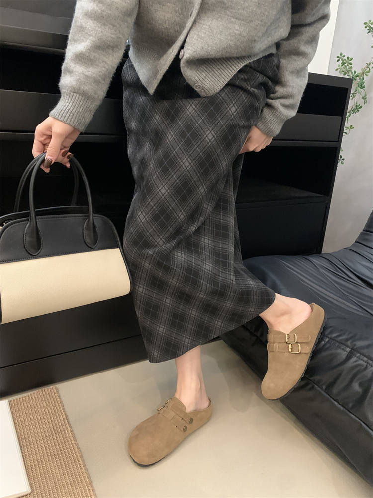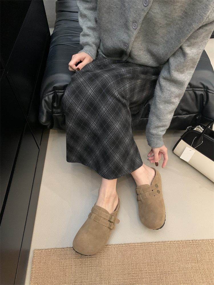 정품 가죽 비르칸 신발 여성 2025 신작 한국식 레트로 라운드 토 슬립 온 하프 슬리퍼 여성용 플랫 노새 신발