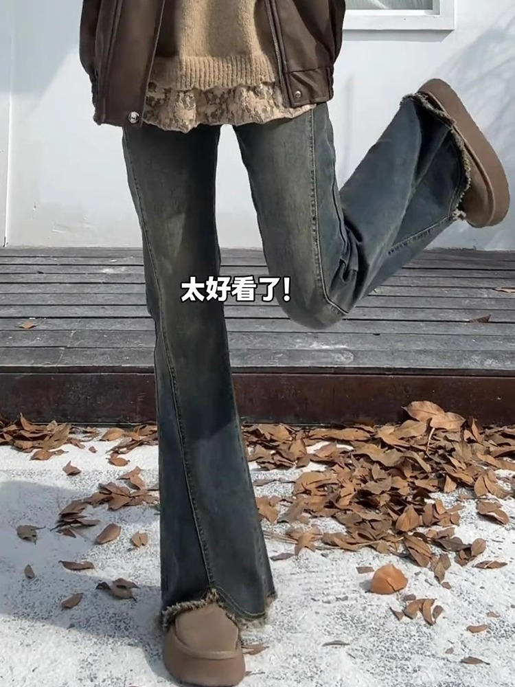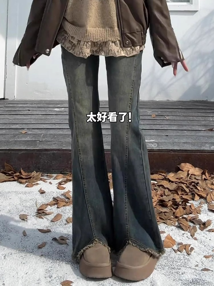 빈티지 블루 모피 가장자리 마이크로 라르 청바지 여성의 봄과 가을 새 플러스 사이즈 통통녀 높은 허리 슬리밍 스트레치 플라 바지스토어 가기