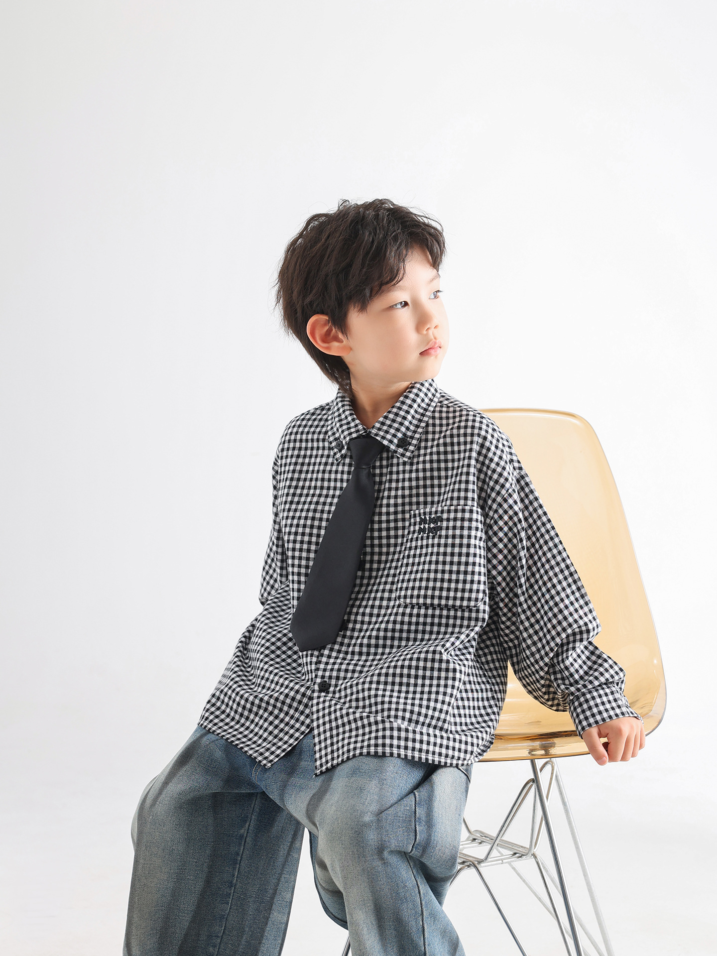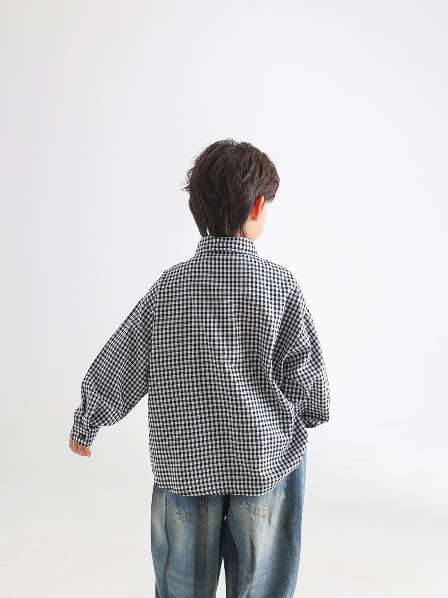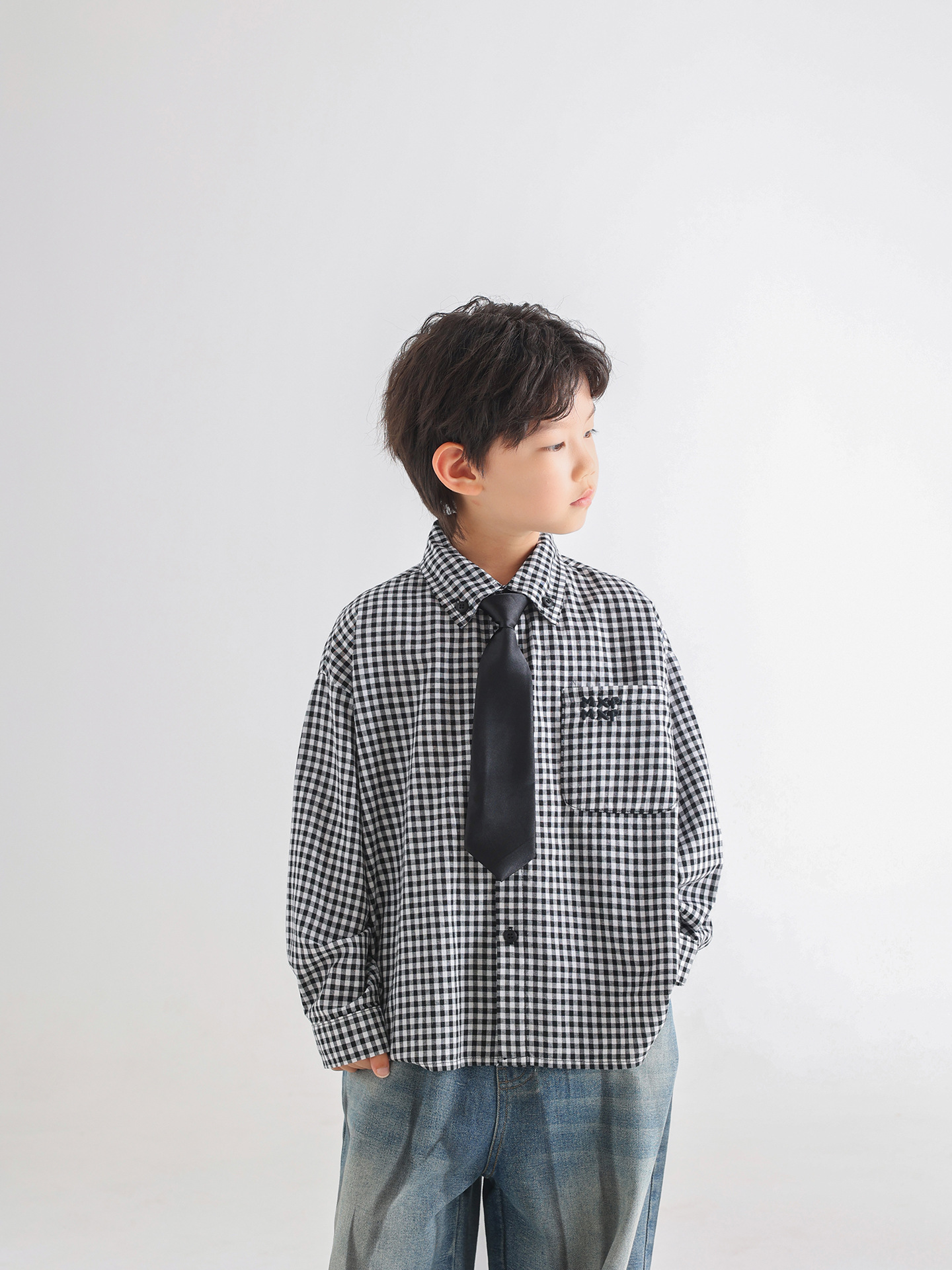 소년 가을 셔츠 2025 새로운 어린이 가을 한국 스타일 넥타이 격자 무늬 아동 의류 간단한 유행 느슨한 아기 셔츠스토어 가기