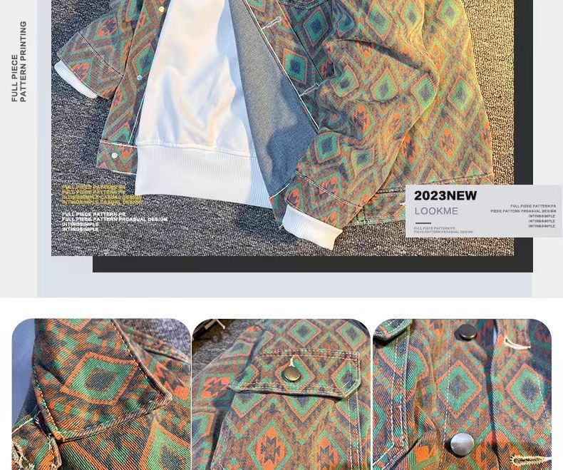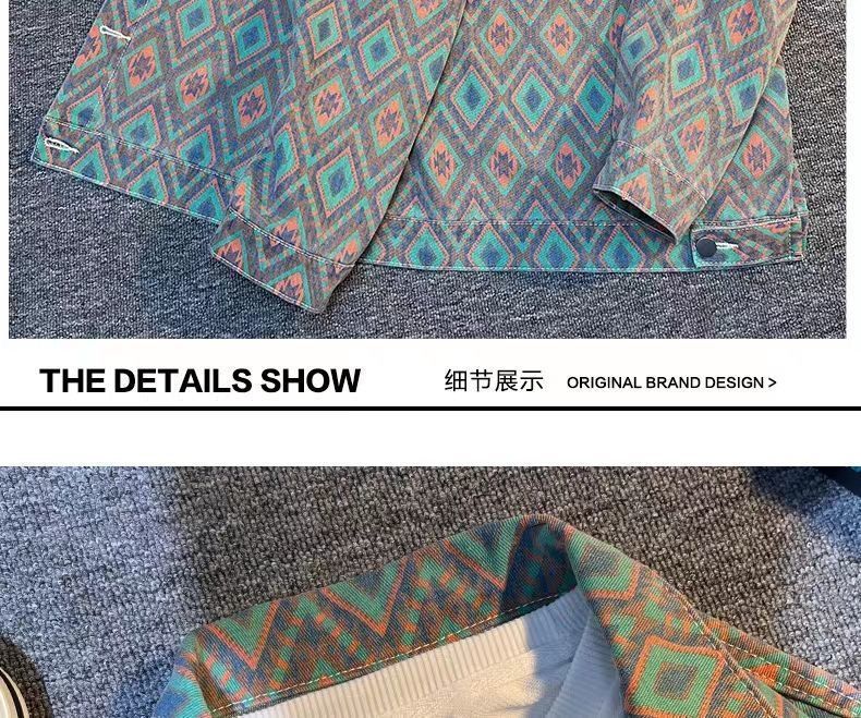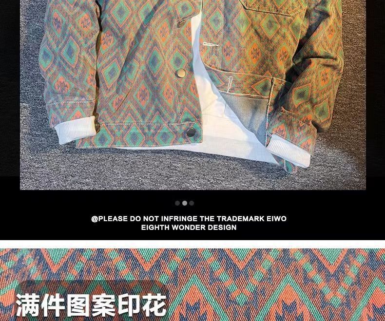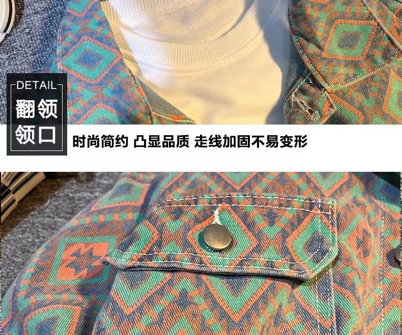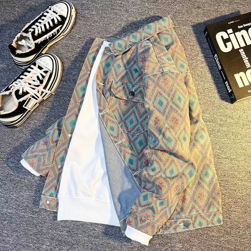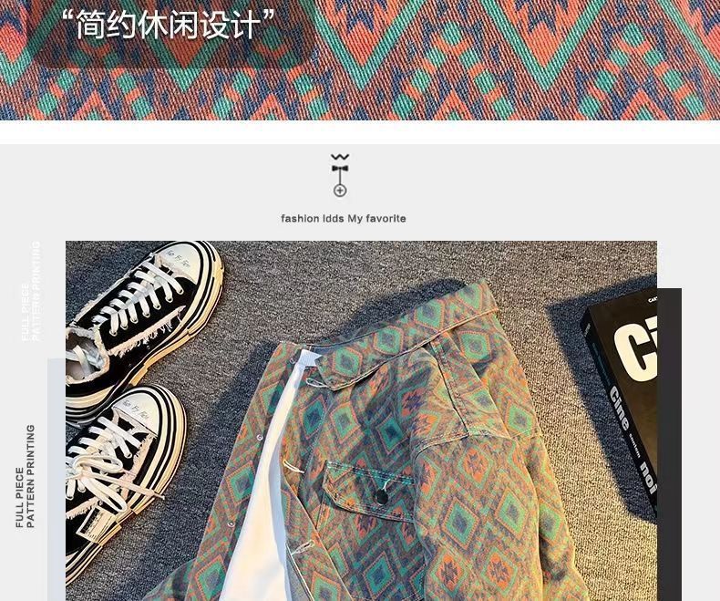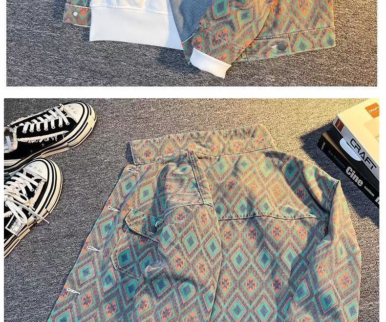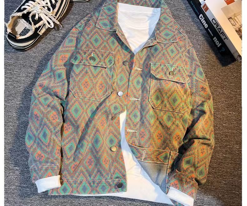 봄과 가을 하이 퀄리티 새로운 도착 마름모꼴 인쇄 데님 재킷 남자 하이 엔드 느낌 Fagoff 핸섬 남성 캐주얼 재킷 탑스토어 가기