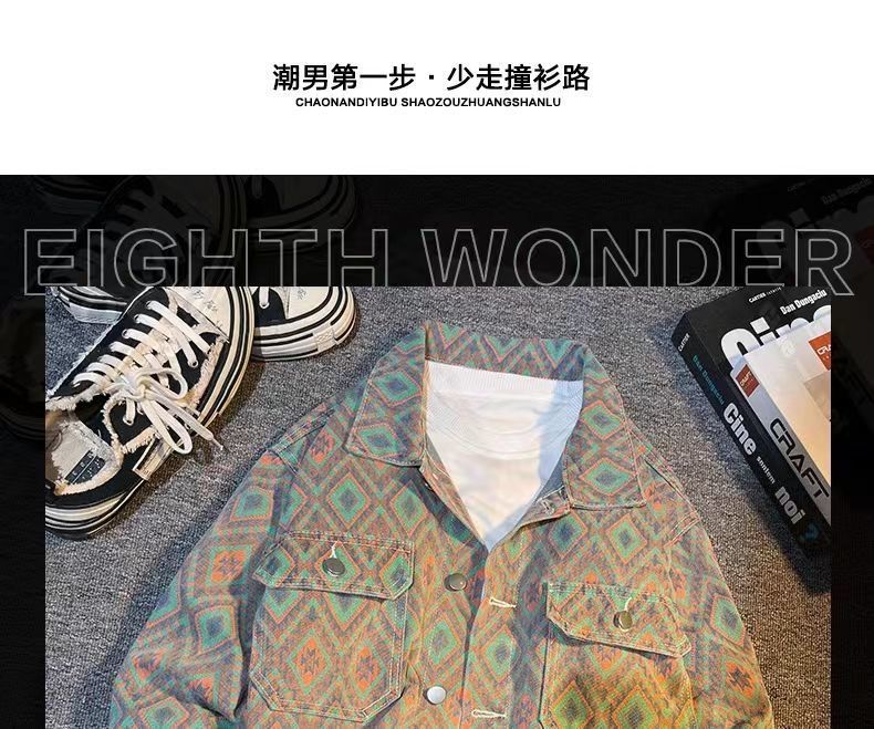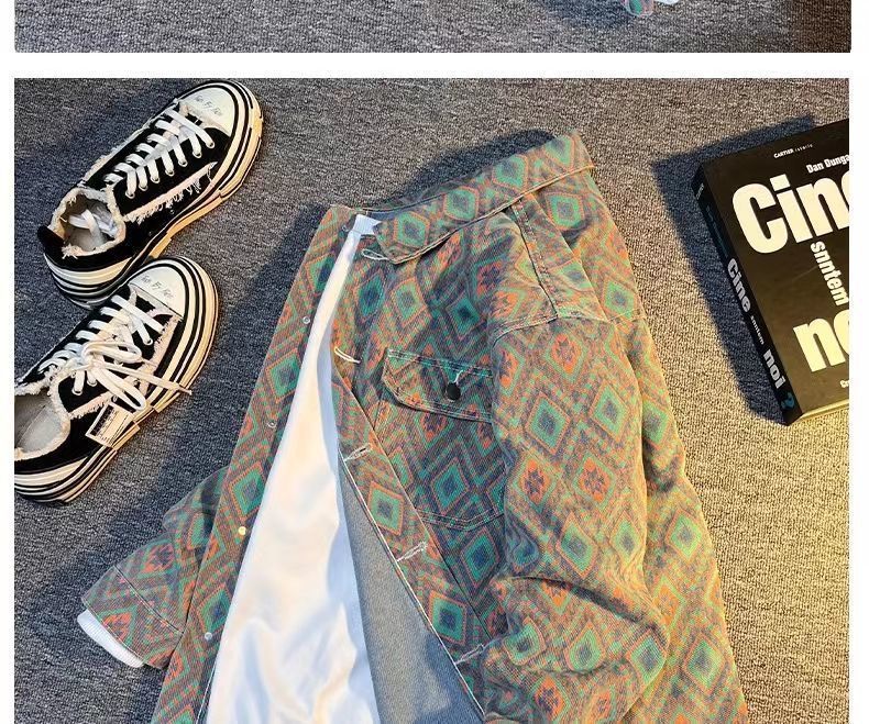 봄과 가을 하이 퀄리티 새로운 도착 마름모꼴 인쇄 데님 재킷 남자 하이 엔드 느낌 Fagoff 핸섬 남성 캐주얼 재킷 탑