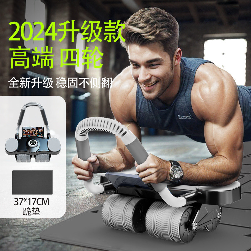 RrJ 4 륜 복부 휠 자동 리바운드 팔꿈치 지원 무릎 꿇기 패드 남성 복부 휠 체중 감소 롤 복부 휠 스키니 배꼽 피트니스 기계스토어 가기