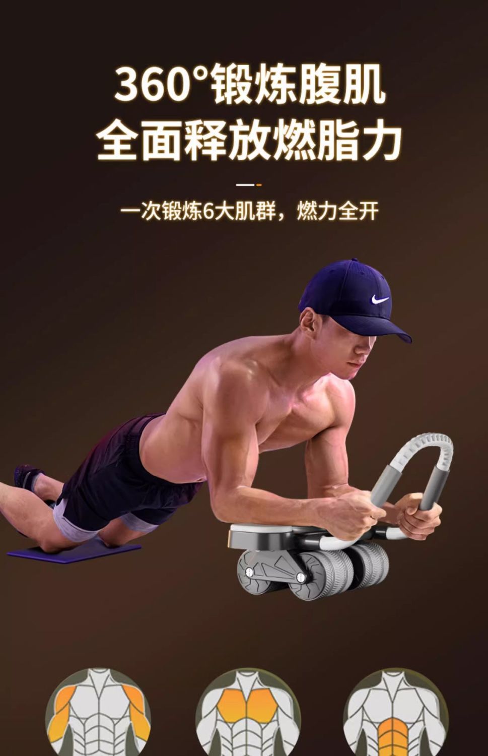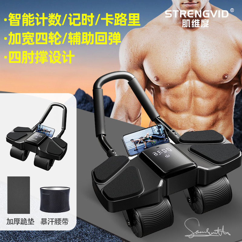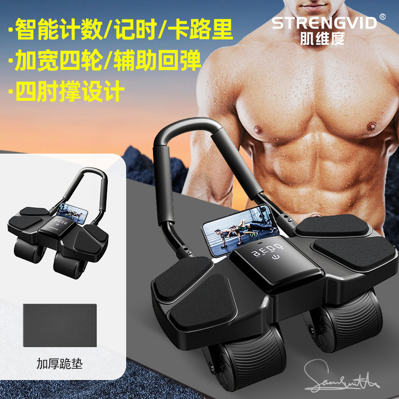 RrJ 4 륜 복부 휠 자동 리바운드 팔꿈치 지원 무릎 꿇기 패드 남성 복부 휠 체중 감소 롤 복부 휠 스키니 배꼽 피트니스 기계