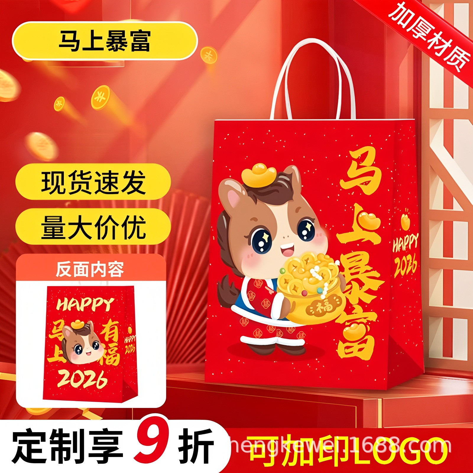 2026년 새해 선물 가방, 휴대용 종이 가방, 설날 유치원 포장 가방, 말의 해, 소가죽 선물 가방, 기념품스토어 가기