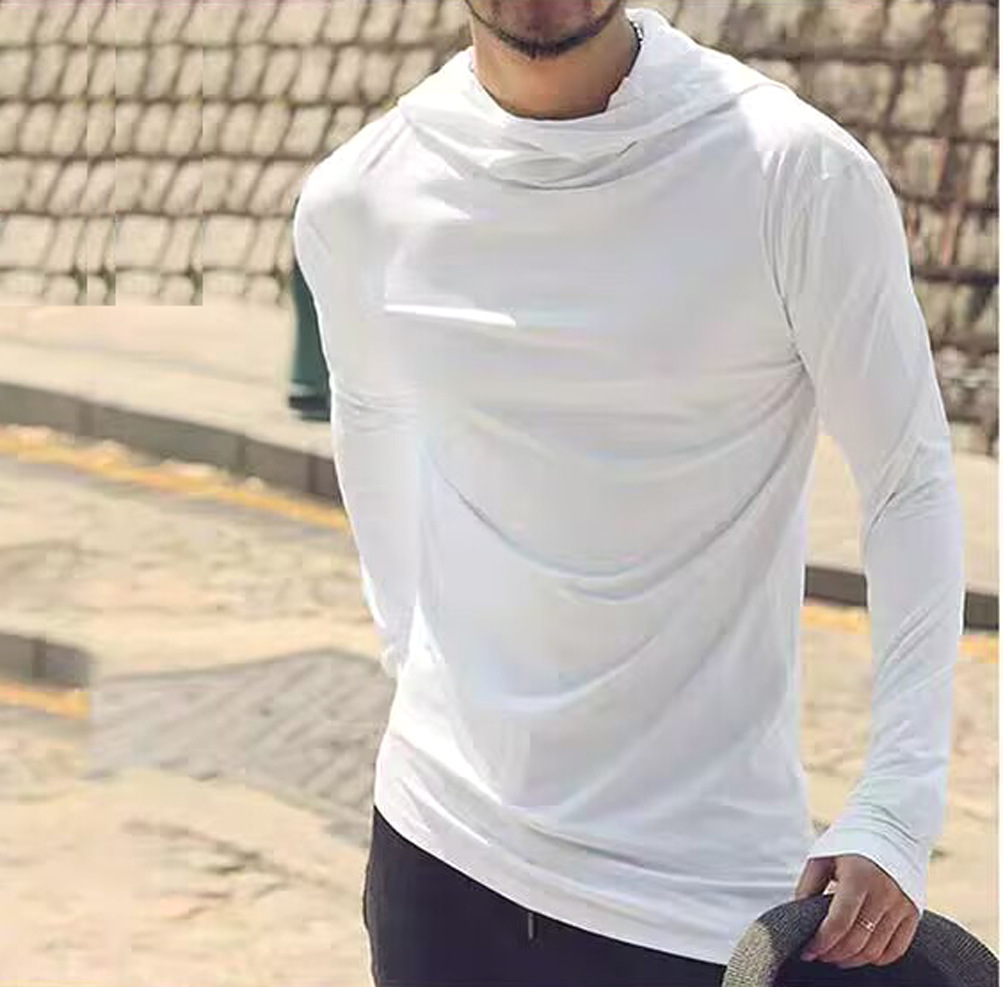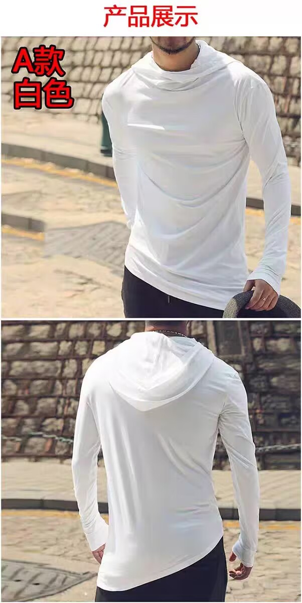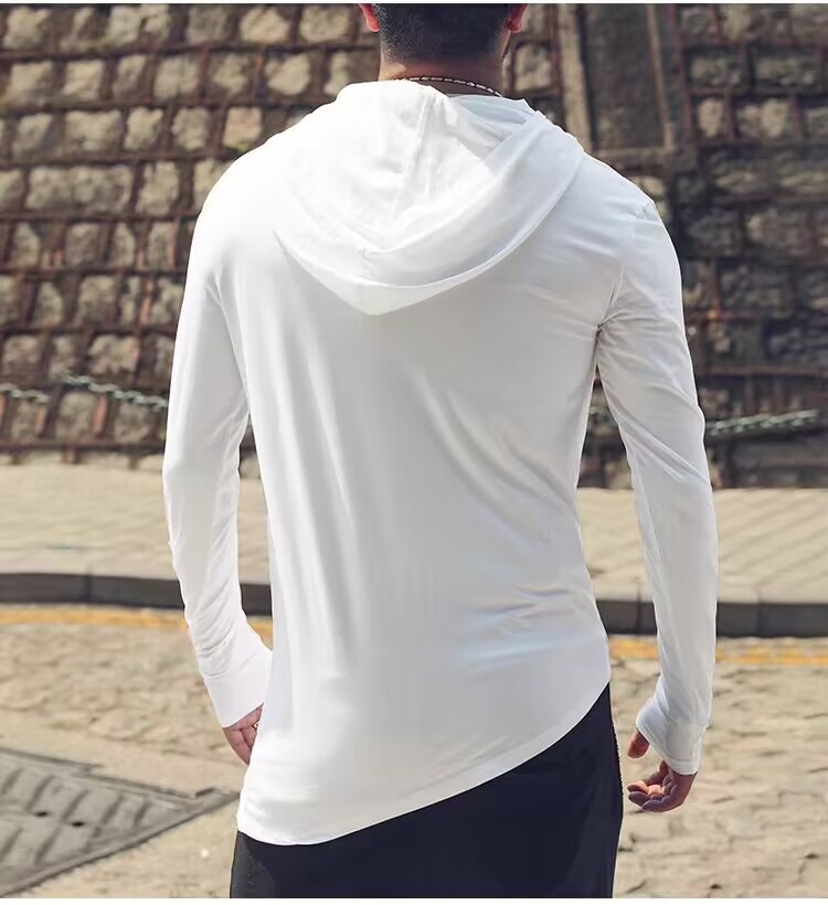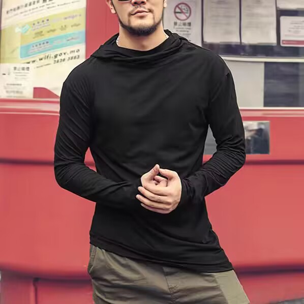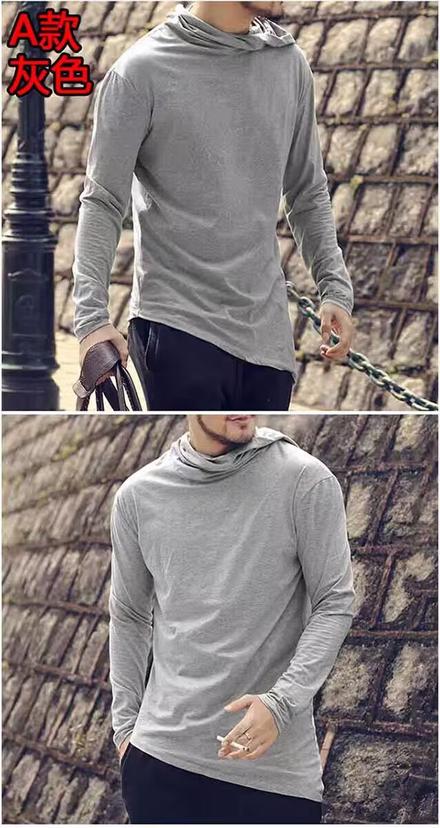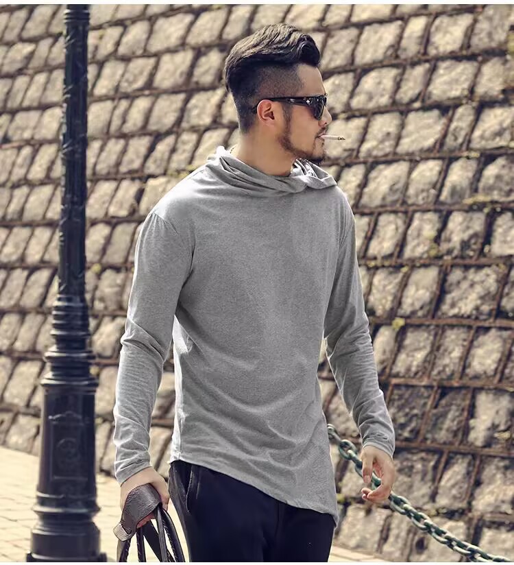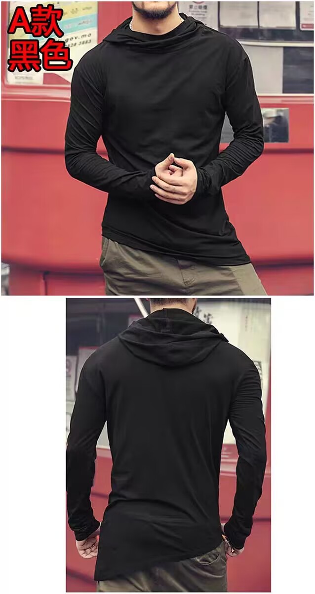 유럽 제품 불규칙한 후드 높은 칼라 긴팔 티셔츠 남성 야외 스포츠 따뜻한베이스 셔츠 더미 칼라 유행스토어 가기