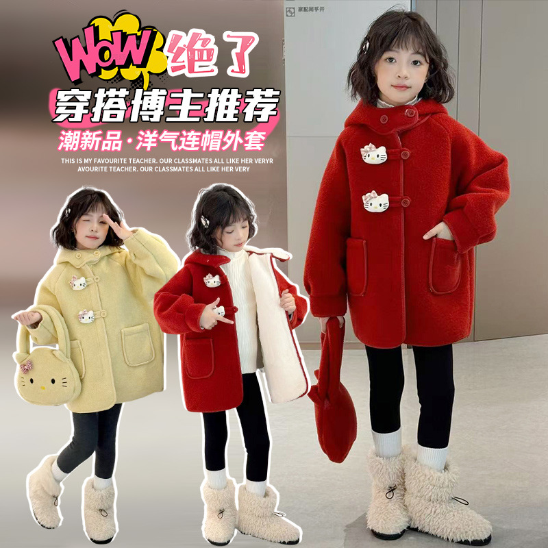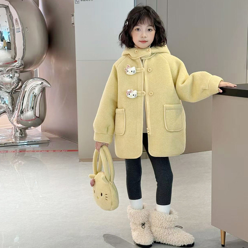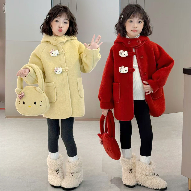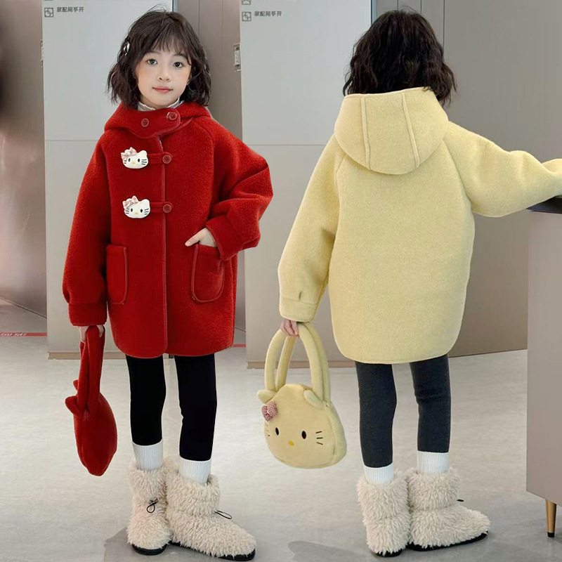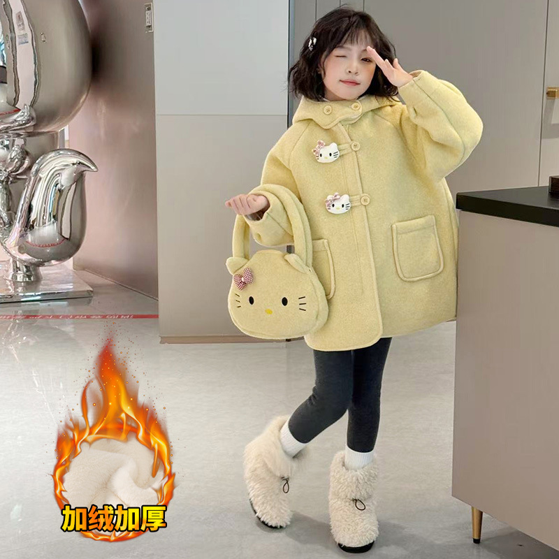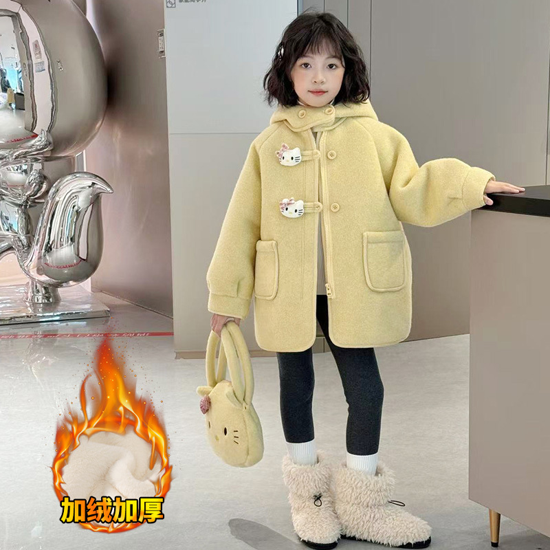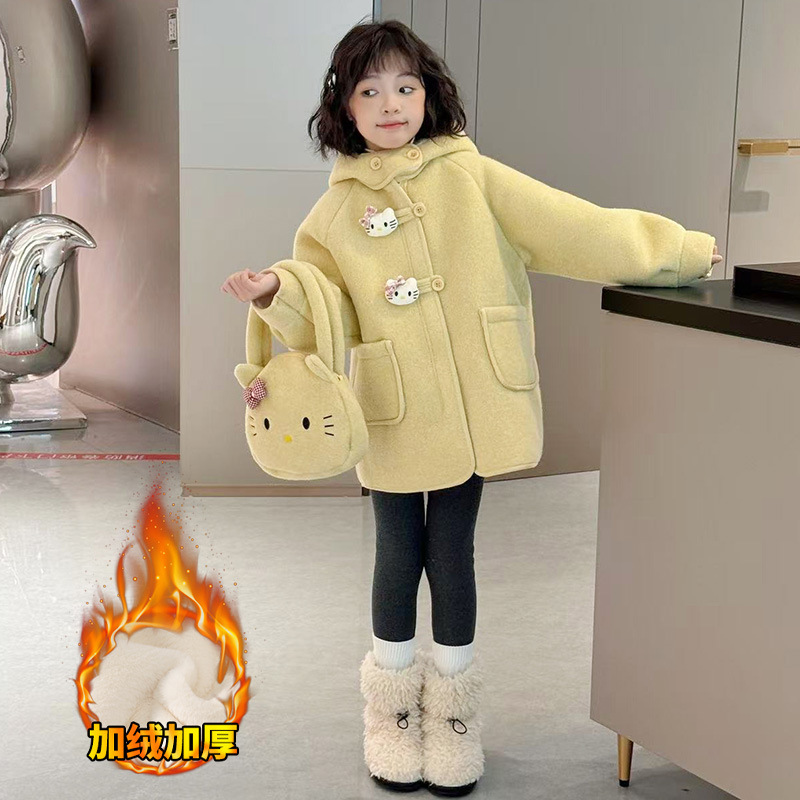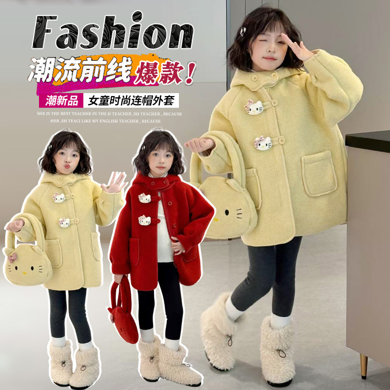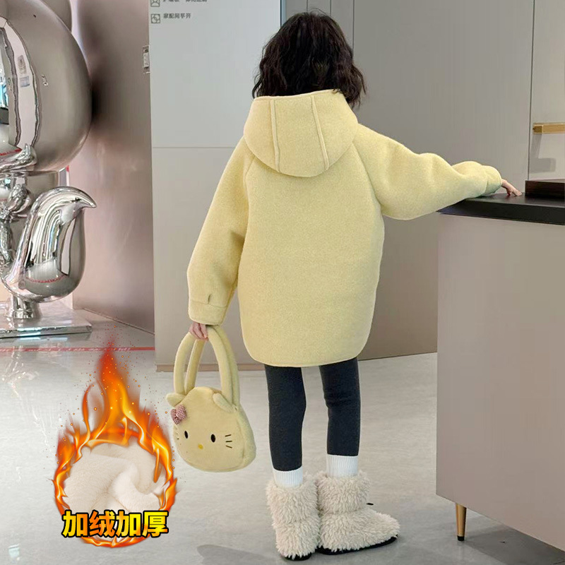 여아 모직 코트 2025 새로운 가을 겨울 의류 아동 유행 여아 중간 길이 두꺼운 모직 코트스토어 가기