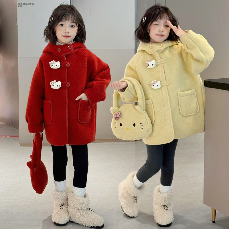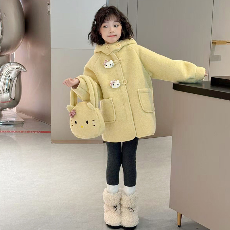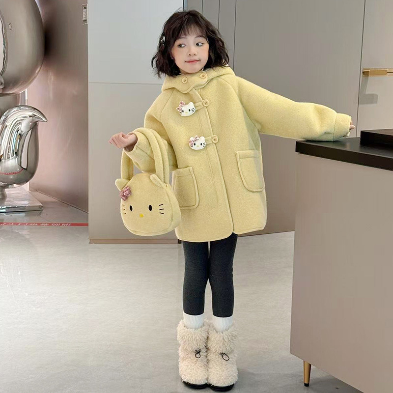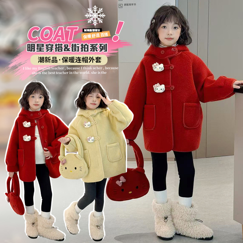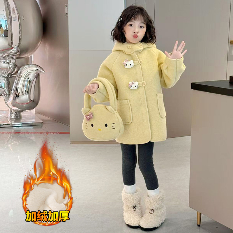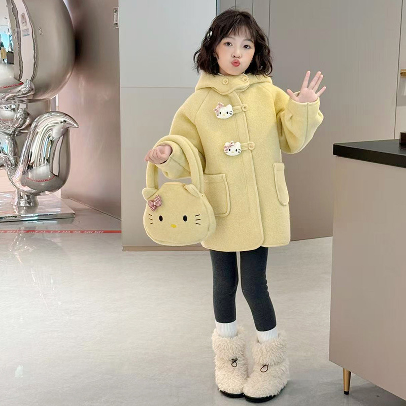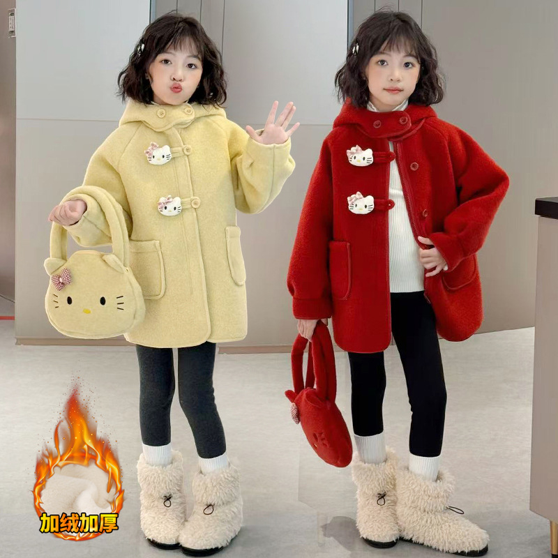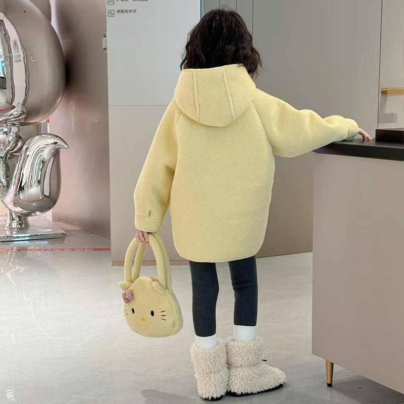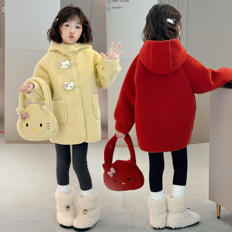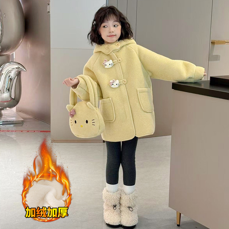 여아 모직 코트 2025 새로운 가을 겨울 의류 아동 유행 여아 중간 길이 두꺼운 모직 코트스토어 가기