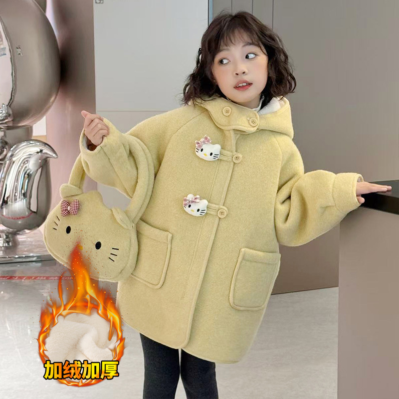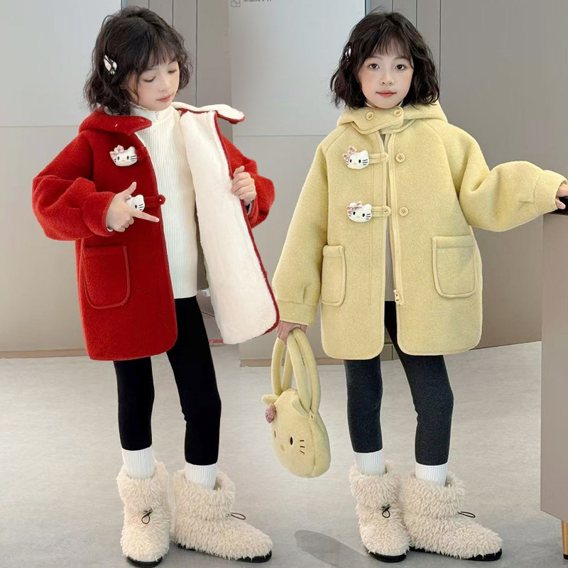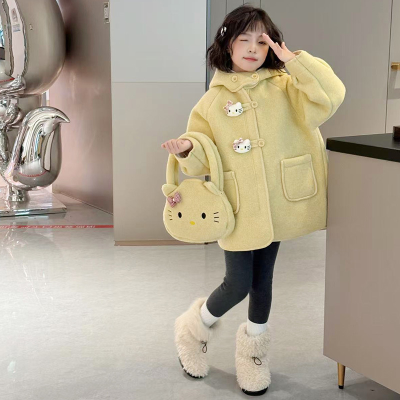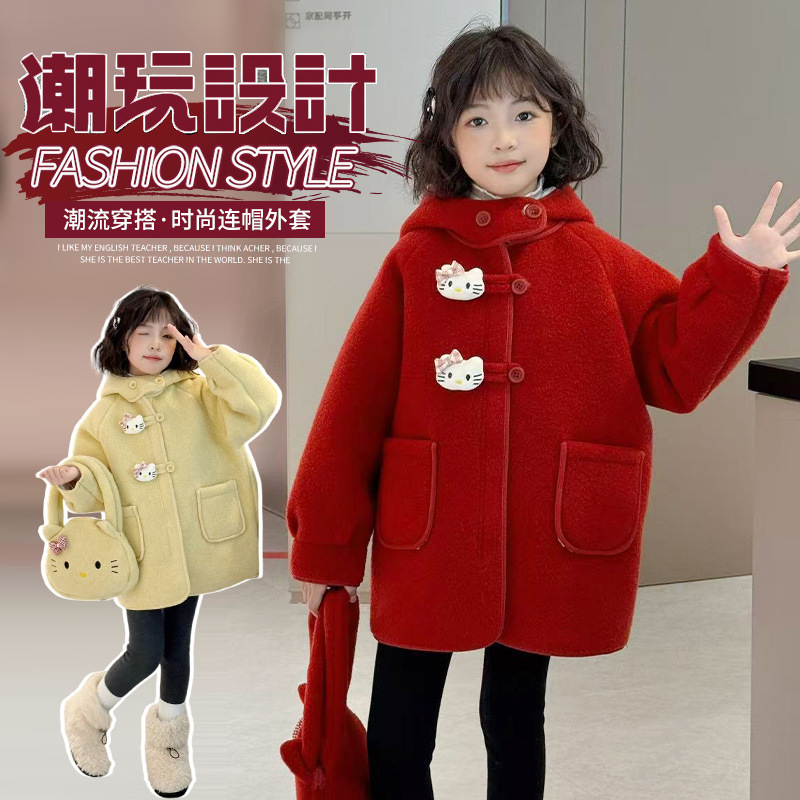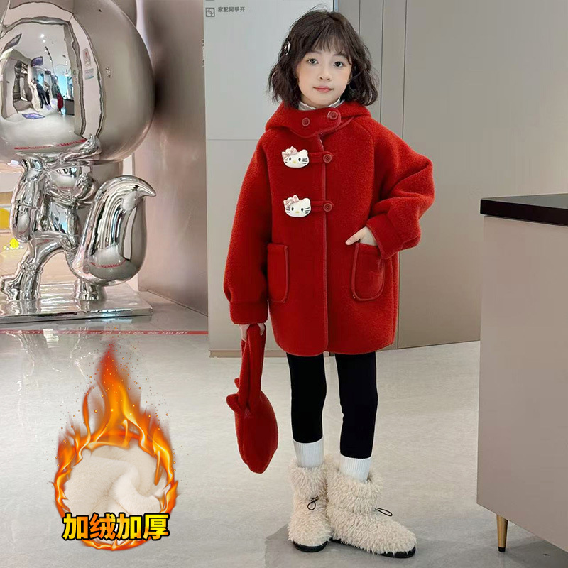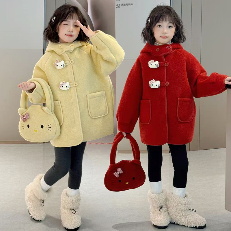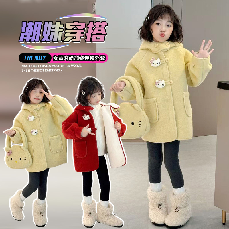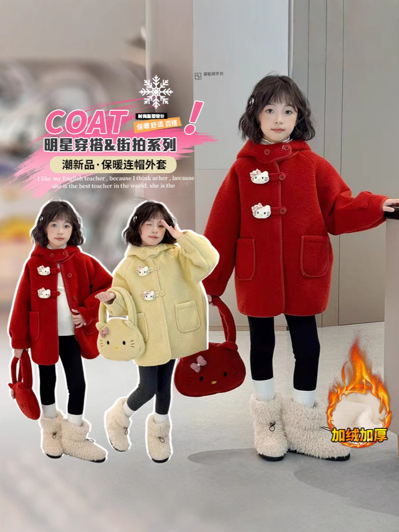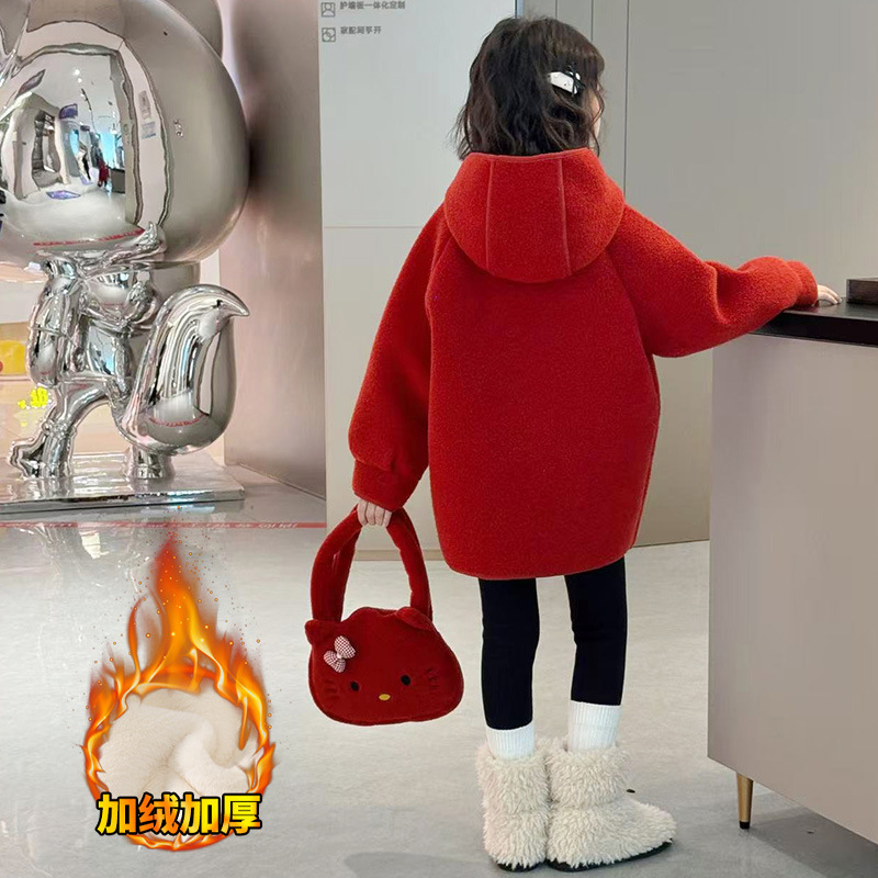 여아 모직 코트 2025 새로운 가을 겨울 의류 아동 유행 여아 중간 길이 두꺼운 모직 코트스토어 가기