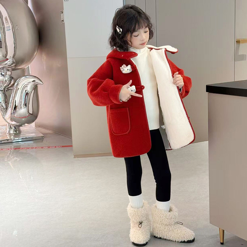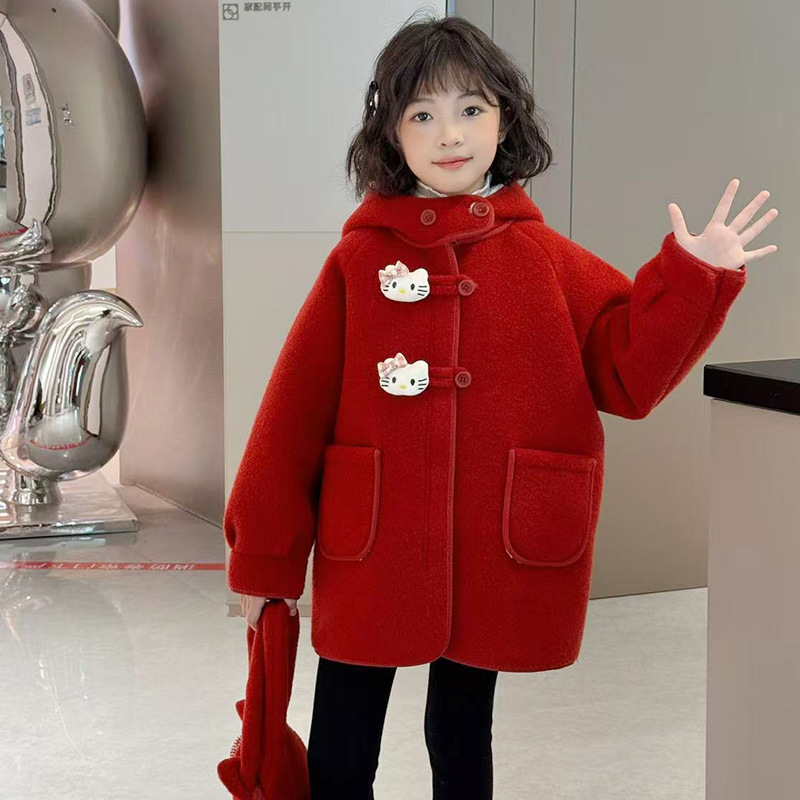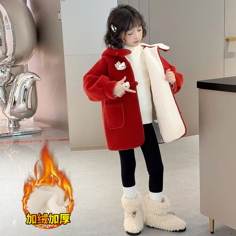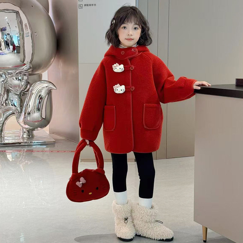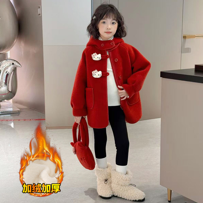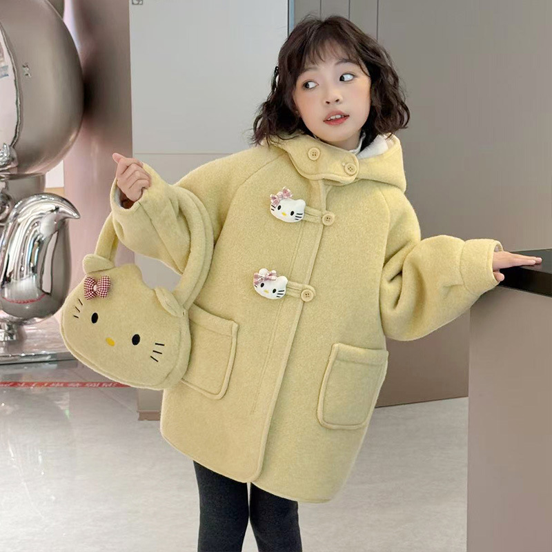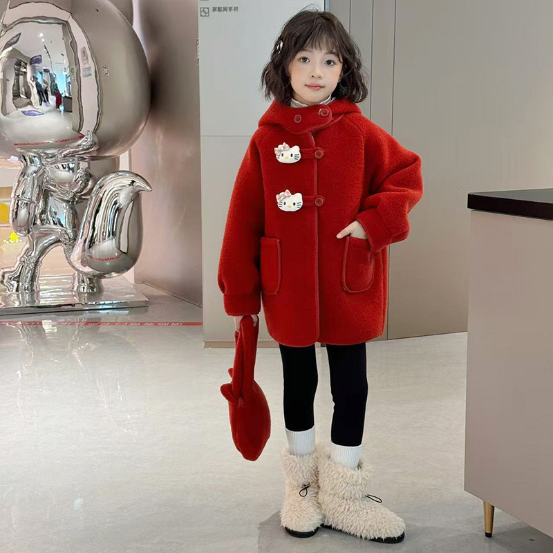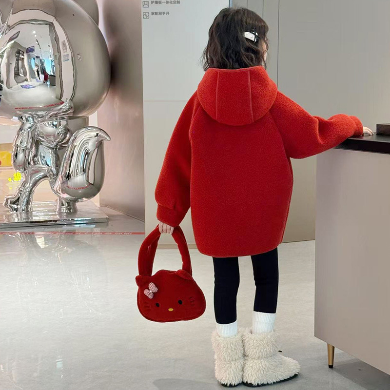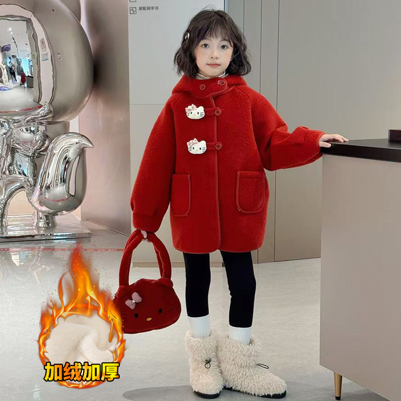 여아 모직 코트 2025 새로운 가을 겨울 의류 아동 유행 여아 중간 길이 두꺼운 모직 코트스토어 가기
