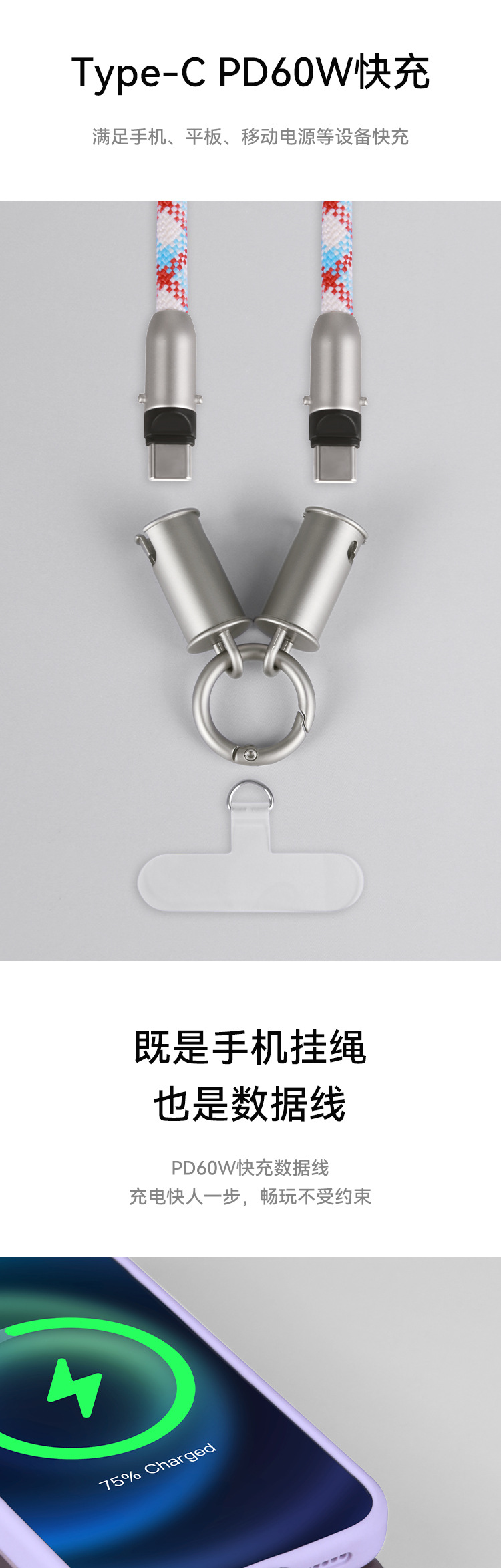 • c-l [스레드] 랜야드 데이터 케이블 투인원★PD60W 고속 충전